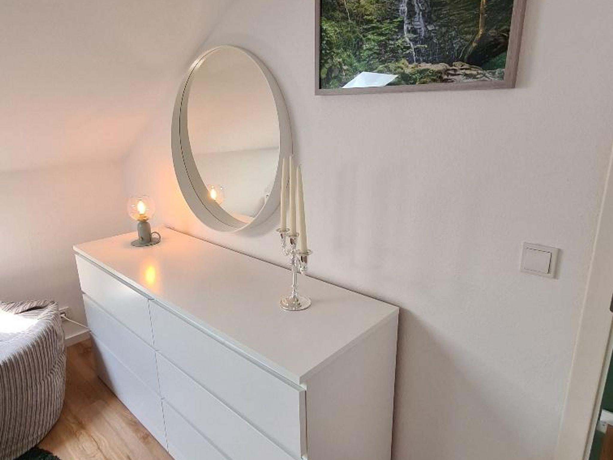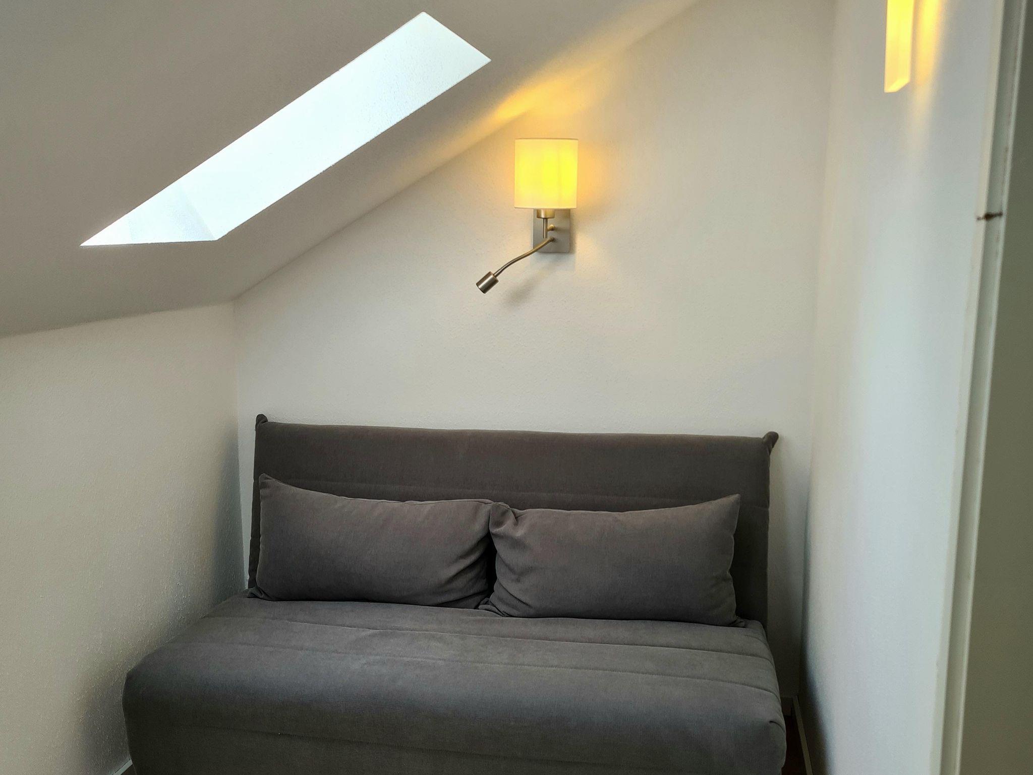 Die FeWo ist geeignet für 3-4 Urlaubsgäste (1 Doppelbett, 1 Einzelbett mit Ausziehfunktion zum Doppelbett). Zusätzlich ist ein Zimmer mit Schreibtisch und Schlafcoach vorhanden, so dass dieses als Schlafmöglichkeit oder für Urlaubsgäste, die während ihres Aufenthalts arbeiten möchten, dieses dafür ideal zur Verfügung steht.