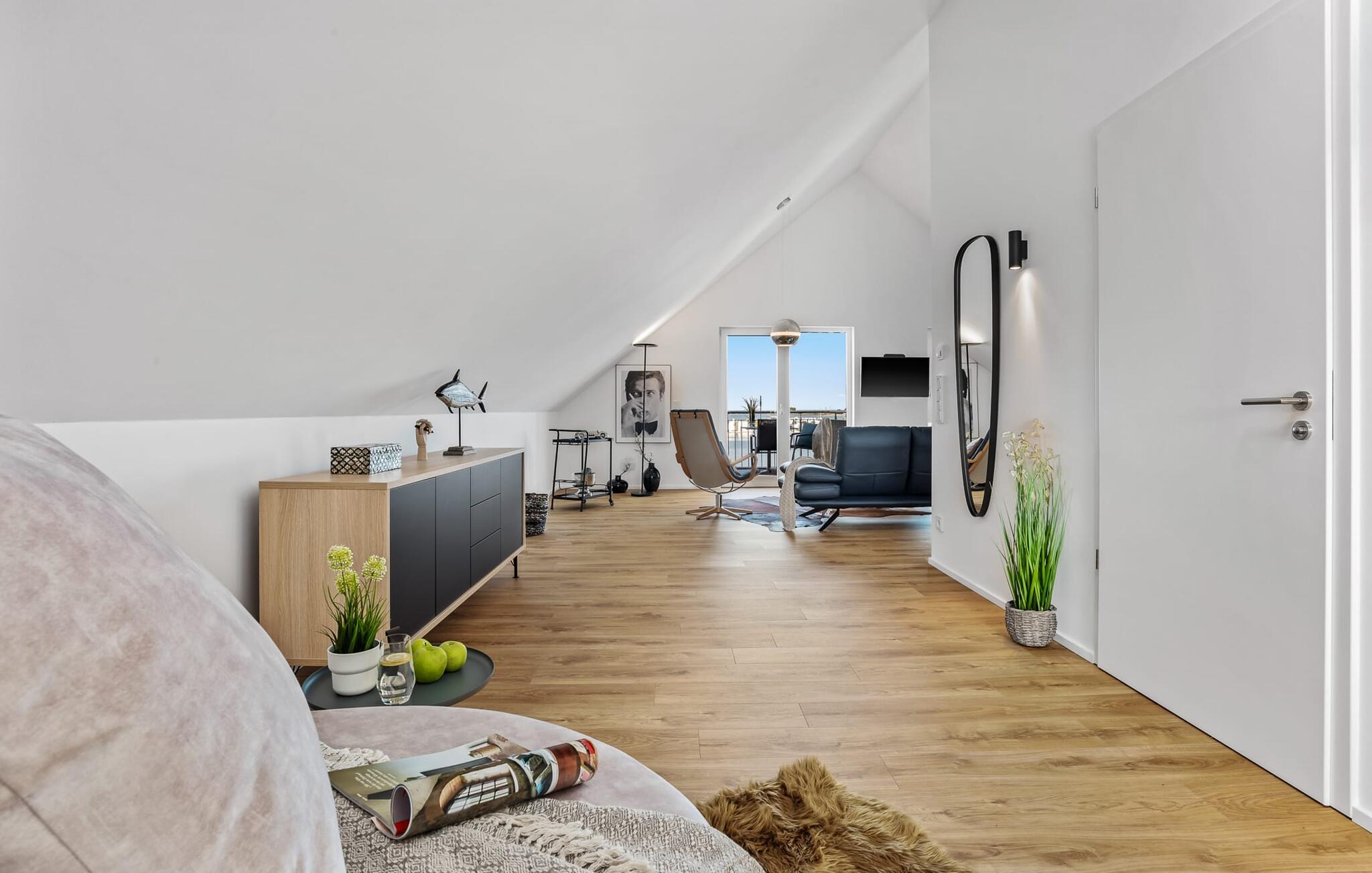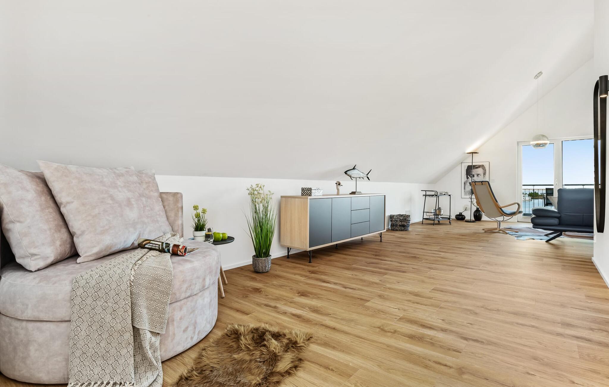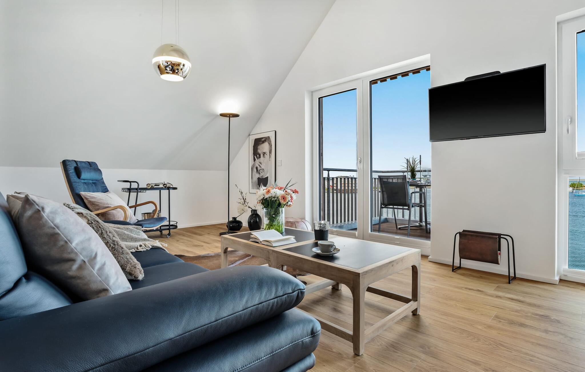 Denne ferielejlighed ligger på 3. sal i en top beliggenhed! AUSBLICK 4.2 er centralt beliggende direkte ved sejl- og sportsbådshavnen i ferieområdet på den livlige havnepromenade med dens varierede butikker og har direkte udsigt til lystbådehavnen. Så snart I åbner lejlighedsdøren, kan I se havnepanoramaet med dets farverige stress og jag gennem vinduet fra gulv til loft foran den åbne stue/alrum over altanen. Feriefølelse fra første sekund! Ferielejligheden i loftstil er lys og venlig og udstråler hygge. At have det godt er ikke svært her! Det integrerede tekøkken i opholds-/spiseområdet er alsidigt og indbyder til at lave mad sammen. I opholdsområdet inviterer den komfortable sofa jer til at blive hængende, og et fjernsyn giver en afveksling fra havnebiografen. Soveværelset, med sin komfortable dobbeltseng, tilbyder de bedste betingelser for en afslappet søvn. Ud over alt det nyttige, har badeværelset en bruser på gulvniveau til en vellykket start på en ny feriedag. Parkeringspladsen ved huset byder på yderligere bekvemmelighed. Den eksisterende elevator sikrer nem adgang til VIEW 4.2, en ferielejlighed, der faktisk lover en vidunderlig UDSIGT. Vores yndlingssted: at nyde den enestående UDSIGT over havnen hele vejen til mundingen af slimet... Bemærk venligst: OstseeResort Olpenitz er meget populært, og der bygges fortsat i parken. Ikke desto mindre kan I se frem til en 5-stjernet standard og et førsteklasses ophold. Byggeaktiviteterne kommer ikke til at forstyrre jer på ferien, og derfor gives der ikke yderligere afslag i prisen.