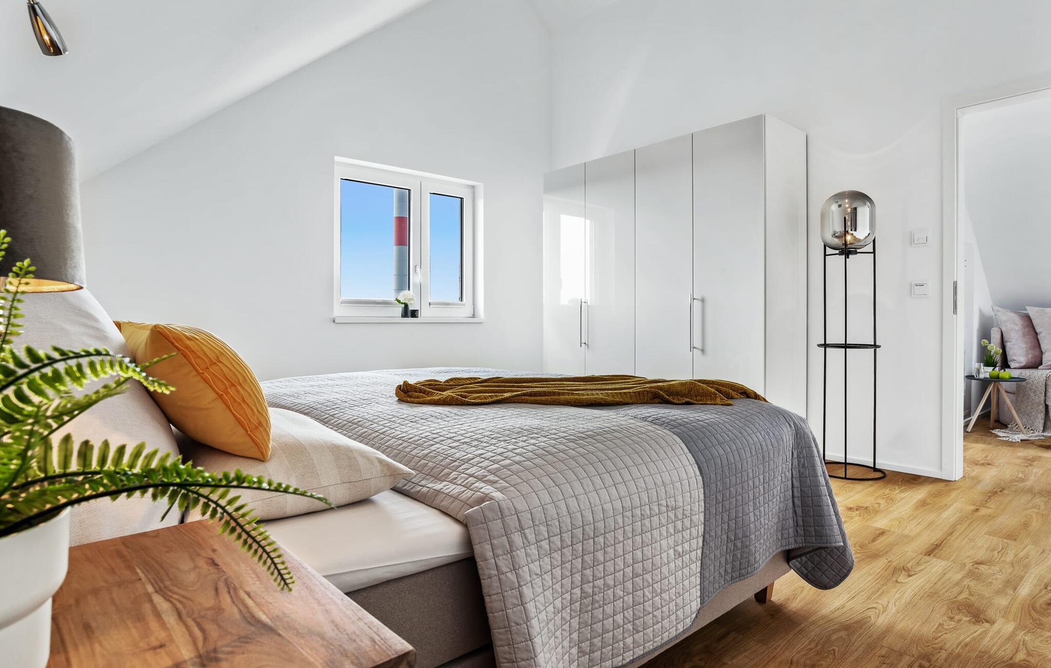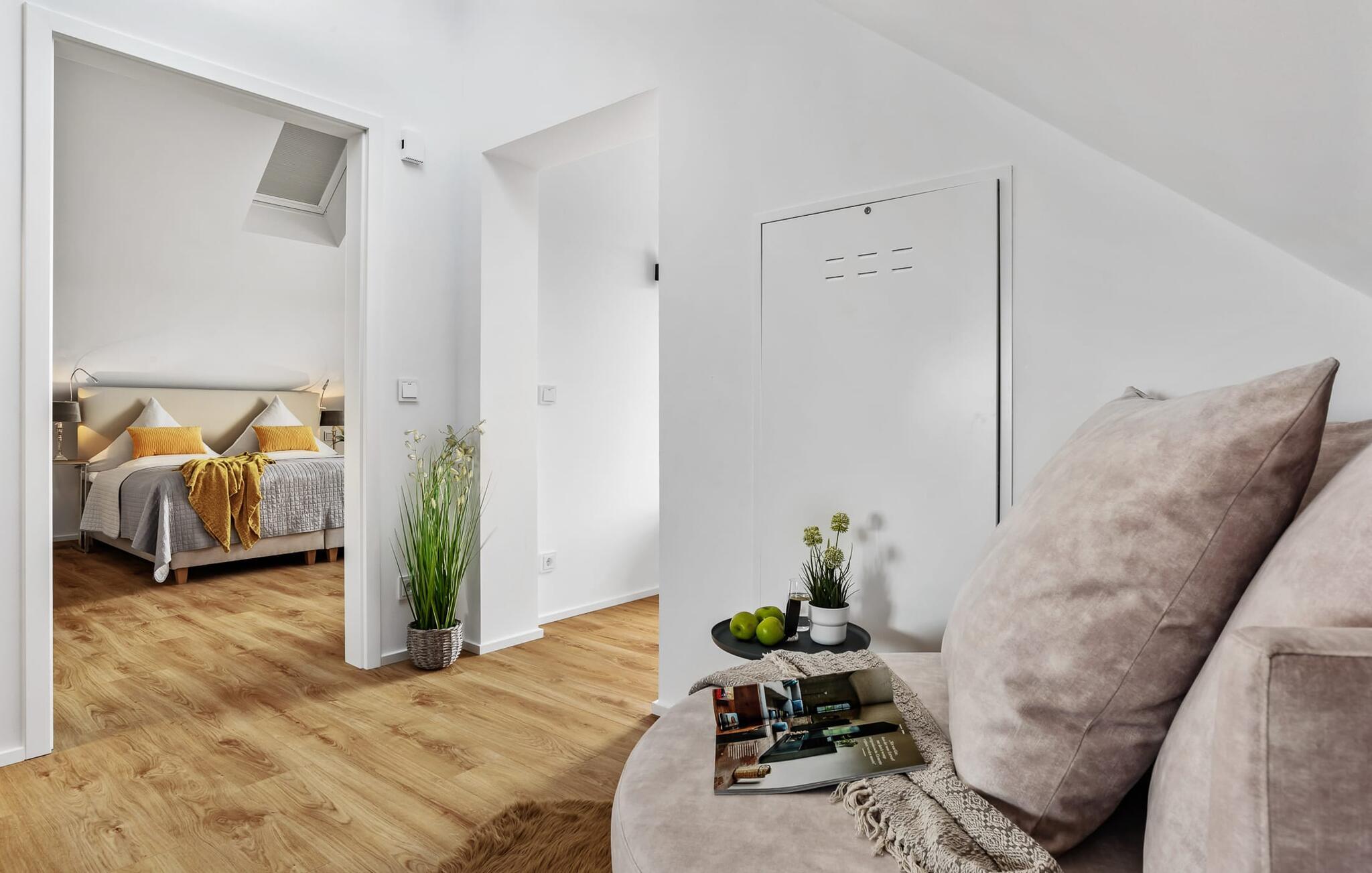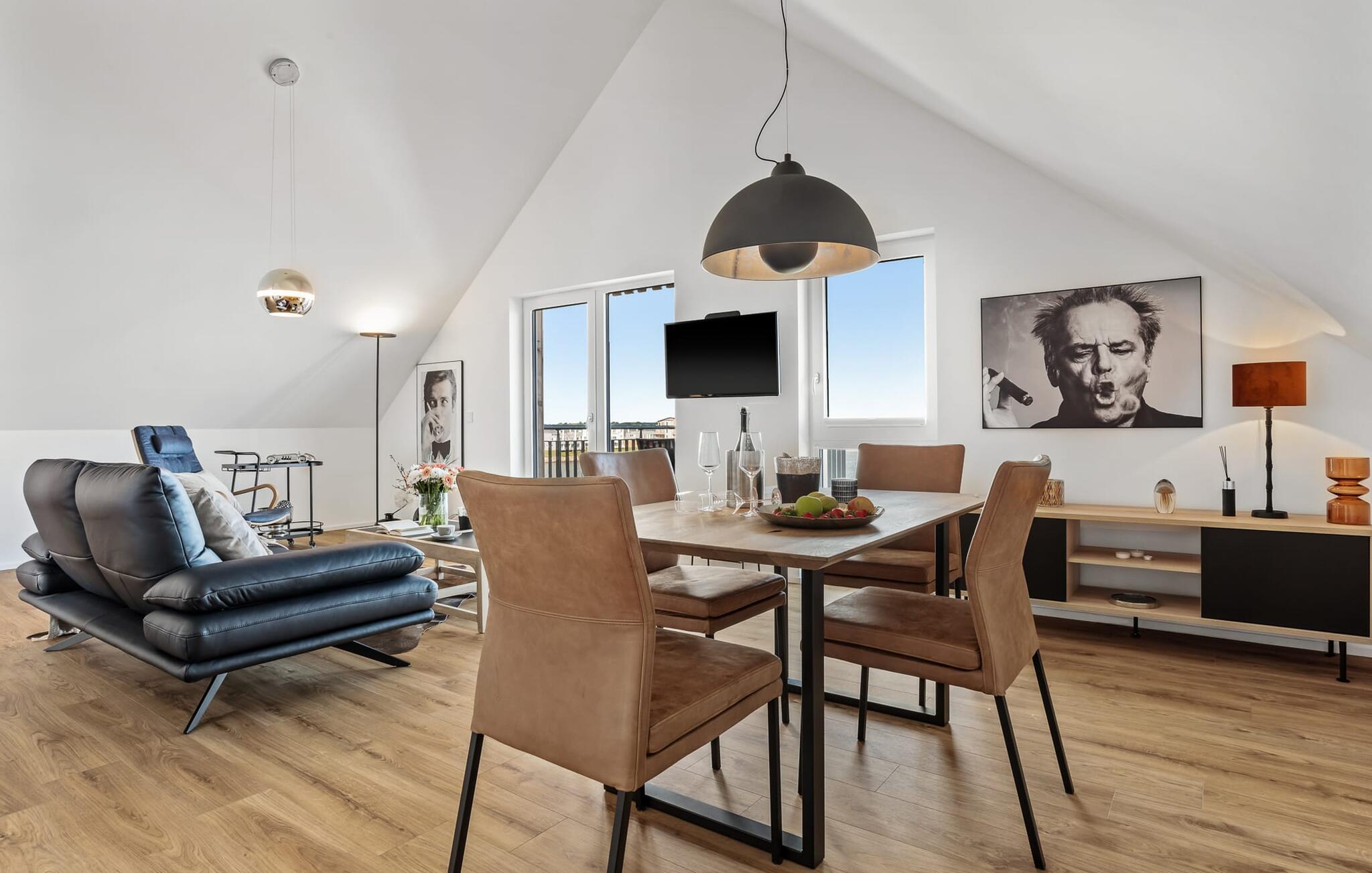 Denne ferielejlighed ligger på 3. sal i en top beliggenhed! AUSBLICK 4.2 er centralt beliggende direkte ved sejl- og sportsbådshavnen i ferieområdet på den livlige havnepromenade med dens varierede butikker og har direkte udsigt til lystbådehavnen. Så snart I åbner lejlighedsdøren, kan I se havnepanoramaet med dets farverige stress og jag gennem vinduet fra gulv til loft foran den åbne stue/alrum over altanen. Feriefølelse fra første sekund! Ferielejligheden i loftstil er lys og venlig og udstråler hygge. At have det godt er ikke svært her! Det integrerede tekøkken i opholds-/spiseområdet er alsidigt og indbyder til at lave mad sammen. I opholdsområdet inviterer den komfortable sofa jer til at blive hængende, og et fjernsyn giver en afveksling fra havnebiografen. Soveværelset, med sin komfortable dobbeltseng, tilbyder de bedste betingelser for en afslappet søvn. Ud over alt det nyttige, har badeværelset en bruser på gulvniveau til en vellykket start på en ny feriedag. Parkeringspladsen ved huset byder på yderligere bekvemmelighed. Den eksisterende elevator sikrer nem adgang til VIEW 4.2, en ferielejlighed, der faktisk lover en vidunderlig UDSIGT. Vores yndlingssted: at nyde den enestående UDSIGT over havnen hele vejen til mundingen af slimet... Bemærk venligst: OstseeResort Olpenitz er meget populært, og der bygges fortsat i parken. Ikke desto mindre kan I se frem til en 5-stjernet standard og et førsteklasses ophold. Byggeaktiviteterne kommer ikke til at forstyrre jer på ferien, og derfor gives der ikke yderligere afslag i prisen.