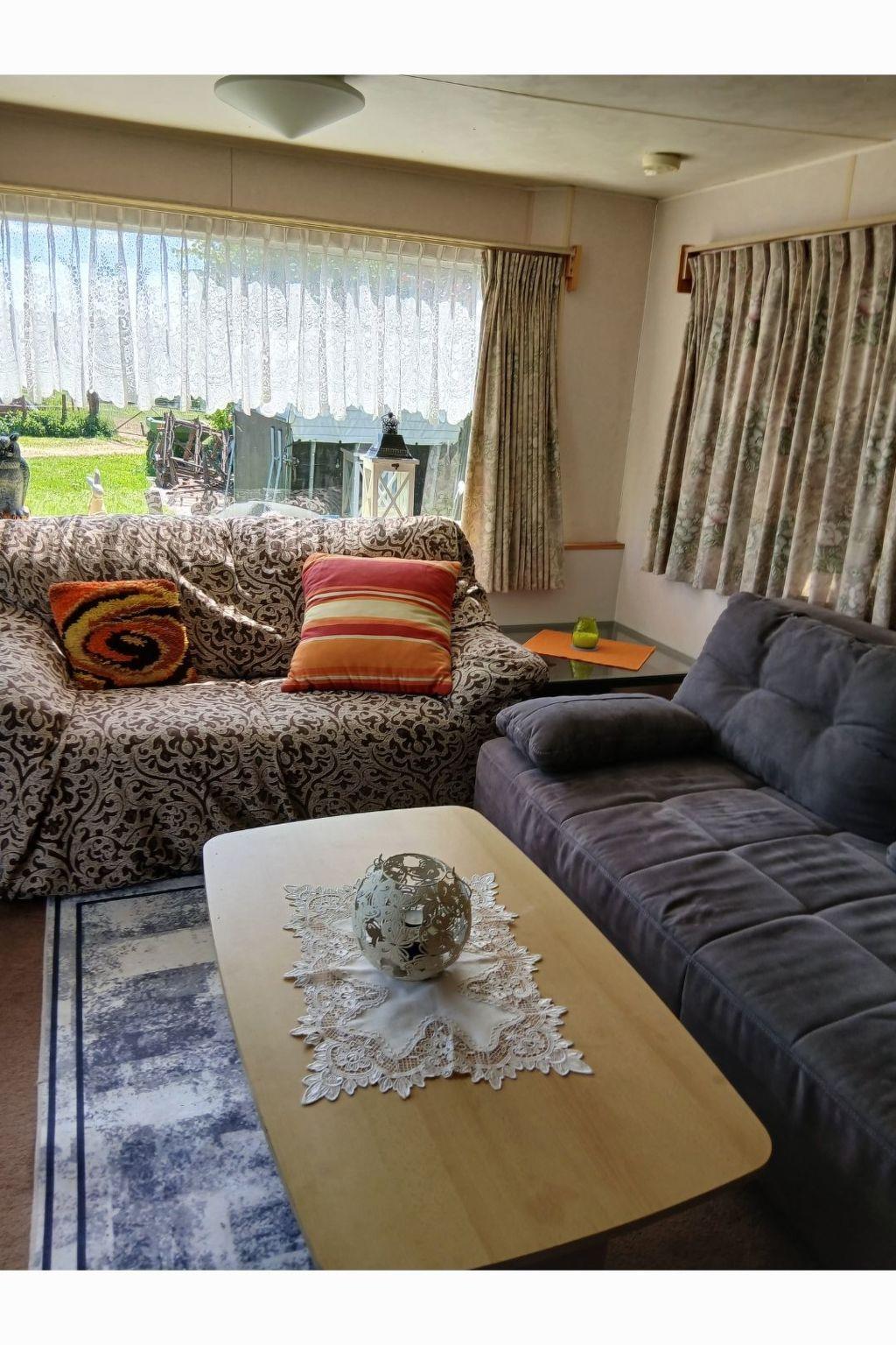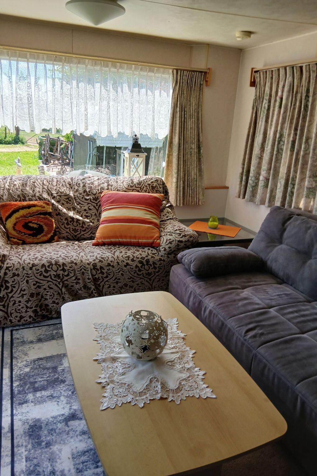 Inside, the mobile home boasts practical and comfortable furnishings to make your stay as pleasant as possible. There is a filter coffee machine to sweeten your mornings, while a kettle and mini oven will meet your culinary needs. For communal use, you will find both a washing machine and tumble dryer in the building for added convenience during your stay. The 2-ring hob allows you to prepare simple meals so you can feel right at home.
