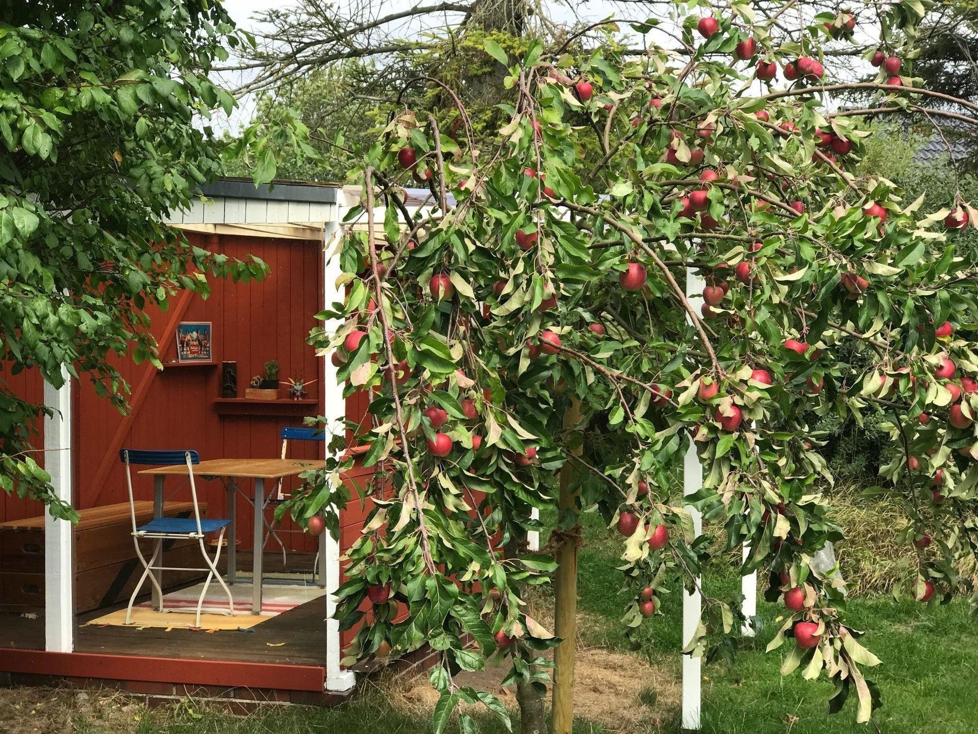 Im Garten gibt es eine Terrasse und eine Laube mit Platz für 5 Personen falls es zu windig ist !