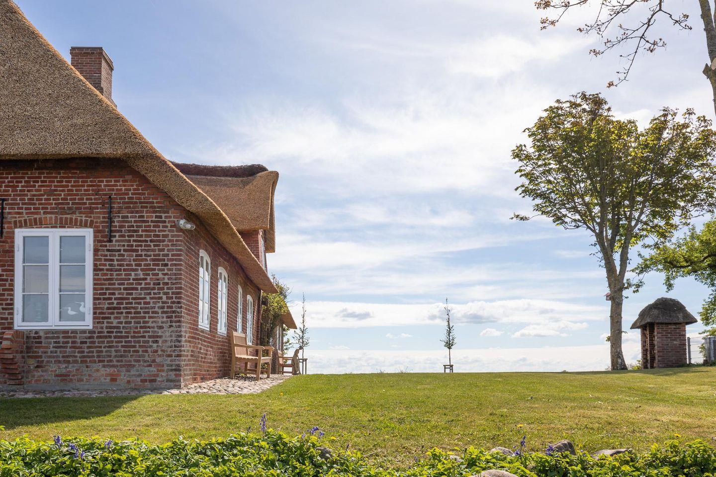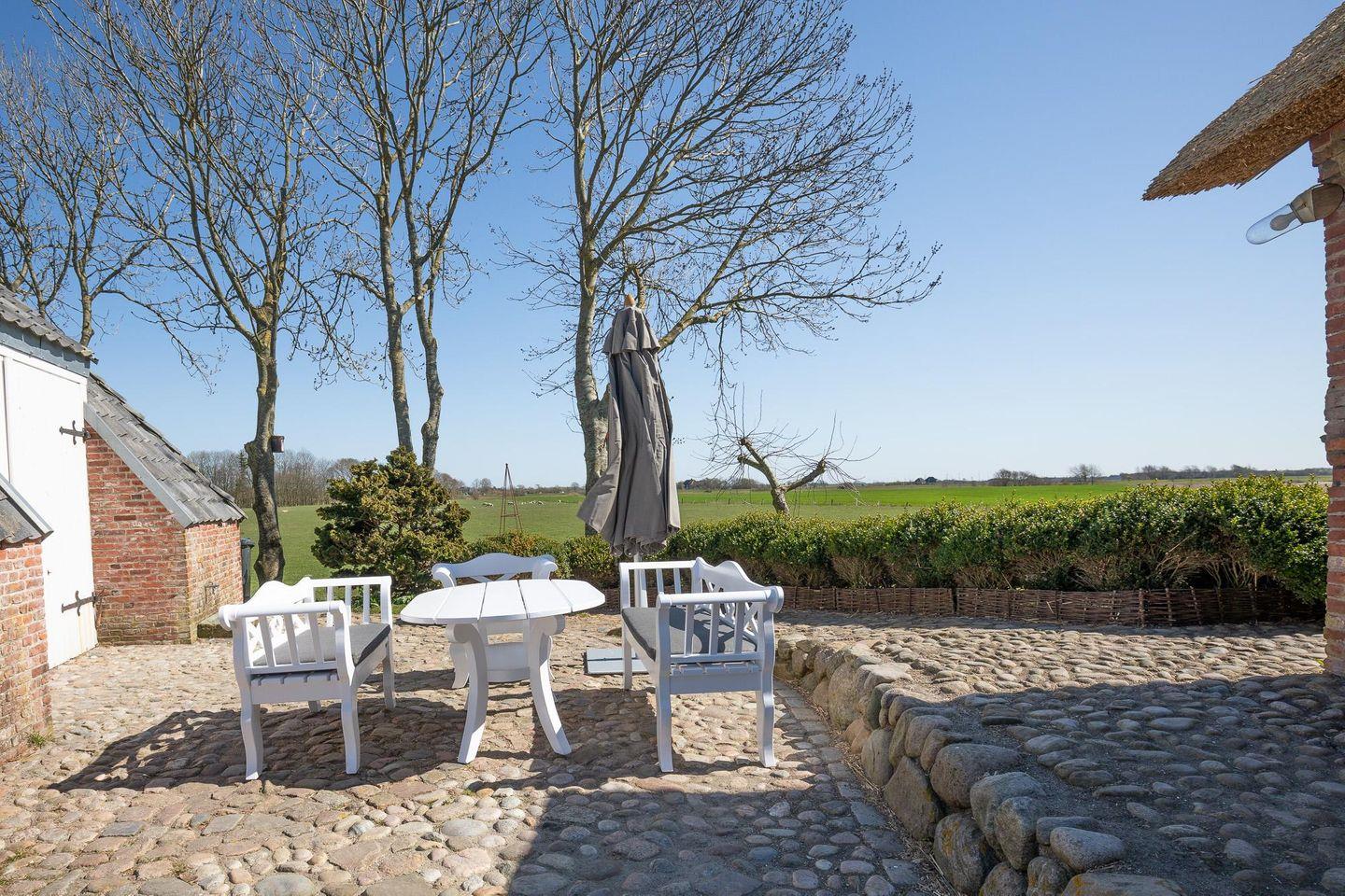 Bei gutem Wetter lädt die Terrasse mit komfortablen Gartenmöbeln und Sonnenschirm ein. Auf einer weiteren Terrasse können Sie in einem Luxus-Strandkorb die Weitsicht über die Geest bis hin zum Nolde-Museum genießen.