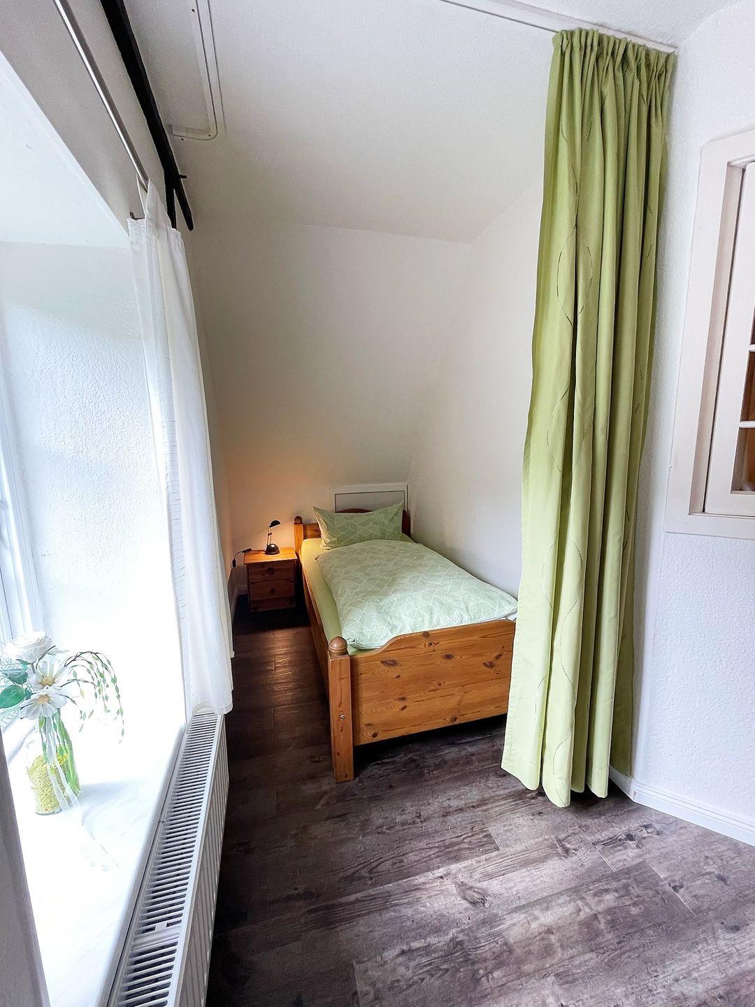 Die Wohnung verfügt über ein gemütliches Schlafzimmer, ein einladendes Wohnzimmer mit Sofaecke, TV und Essbereich sowie eine gut ausgestattete Kochnische, in der Sie Ihre Lieblingsgerichte zubereiten können. Einen dritten Schlafplatz finden Sie in einer Nische im Wohnraum. Für mehr Privatsphäre gibt es eine Abtrennung mit Vorhang. Die Küchenutensilien, ein Kühlschrank, ein Backofen, eine Kaffeemaschine und viele weitere Annehmlichkeiten sorgen dafür, dass es Ihnen an nichts fehlt. Nachdem Sie am Morgen in der Dusche erfrischt wurden, können Sie den Tag auf der sonnigen Liegewiese im Garten ausklingen lassen oder einfach auf den Sonnenliegen entspannen.