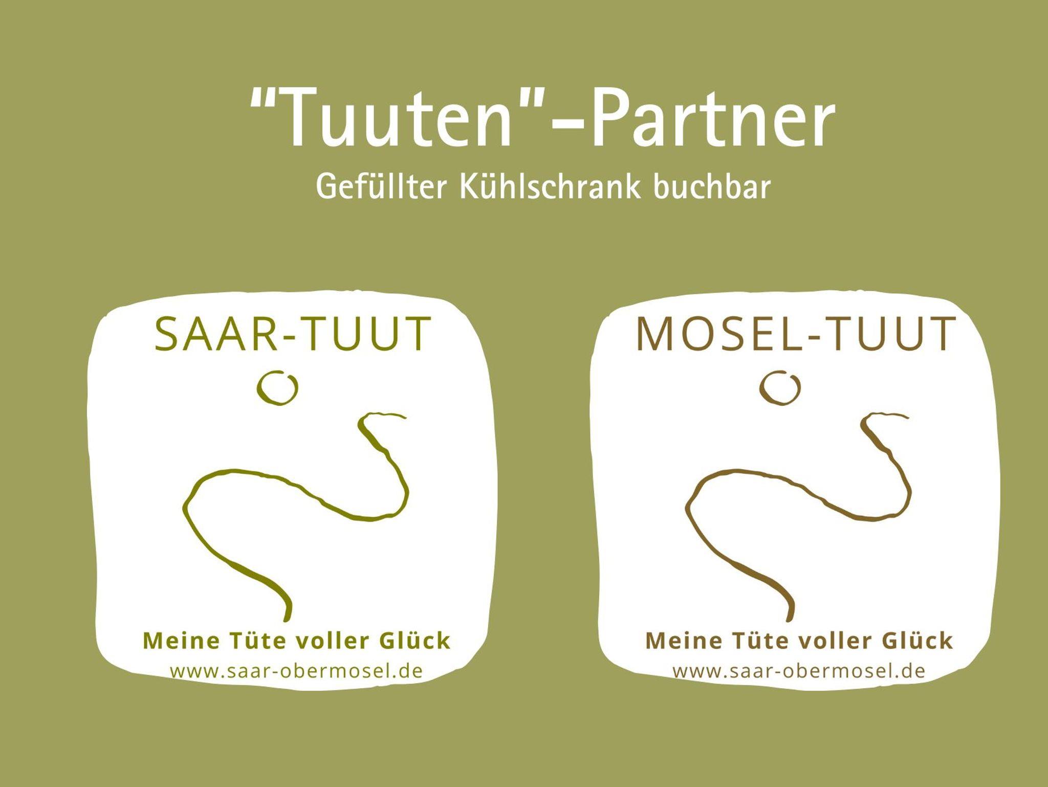 Die Saar-Tuut enthält ein Brot, ein Glas Marmelade, eine Flasche Milch, eine Packung Käse, ein Glas Wurst, ein Glas Joghurt Natur, Butter, Eier und eine Packung Schinken (Preis: 36,50 €)