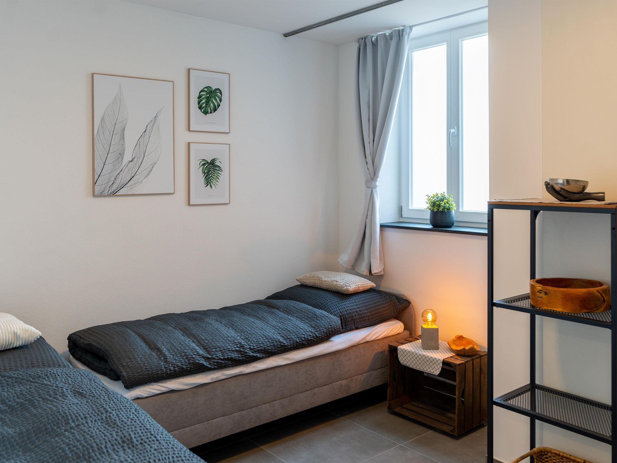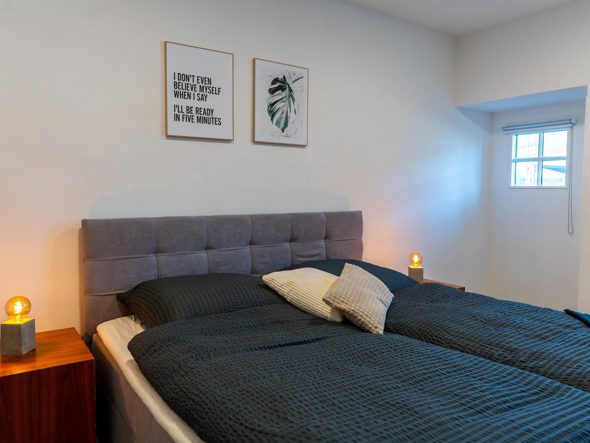 Herzlich Willkommen in unserer exklusiven Ferienwohnung im denkmalgeschützten Halfenhaus. Der Zutritt in die ebenerdige und barrierearme Wohnung erfolgt über eine Treppenstufe. Dahinter erwartet Sie ein Doppelschlafzimmer mit einem hochwertigen Boxspringbett. Weitere zwei Personen finden im 2. Schlafzimmer mit separaten Betten (je 0,80 x 2,00 m, die auch zusammengestellt werden können) erholsamen Schlaf. Die moderne Küchenzeile mit Nespressomaschine sowie einer Filtermaschine, Backofen, Spülmaschine Microwelle, Wasserkocher und dem Kühlschrank mit Gefrierfach ist Teil des offenen Wohn- und Essbereiches. Chillen Sie auf dort dem bequemen Sofa, planen Sie Ihren nächsten Urlaubstag oder genießen Sie ein Glas Wein in gemütlicher Atmosphäre.