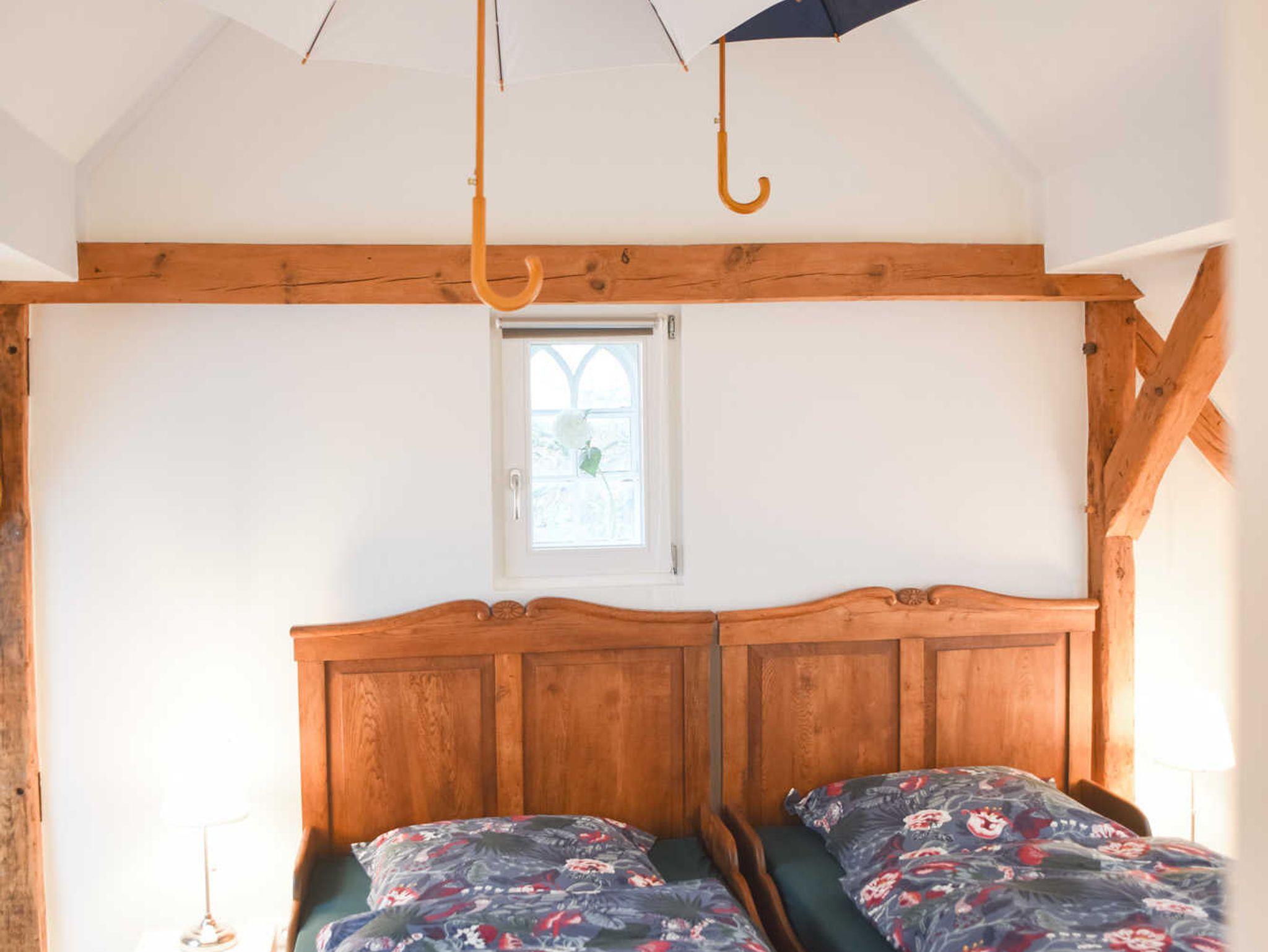 • Zimmer 2: zwei Einzelbetten, 0,9 x 2,00 m inkl. Bettwäsche (die Betten können bei Bedarf zu einem Doppelbett zusammengeschoben werden)