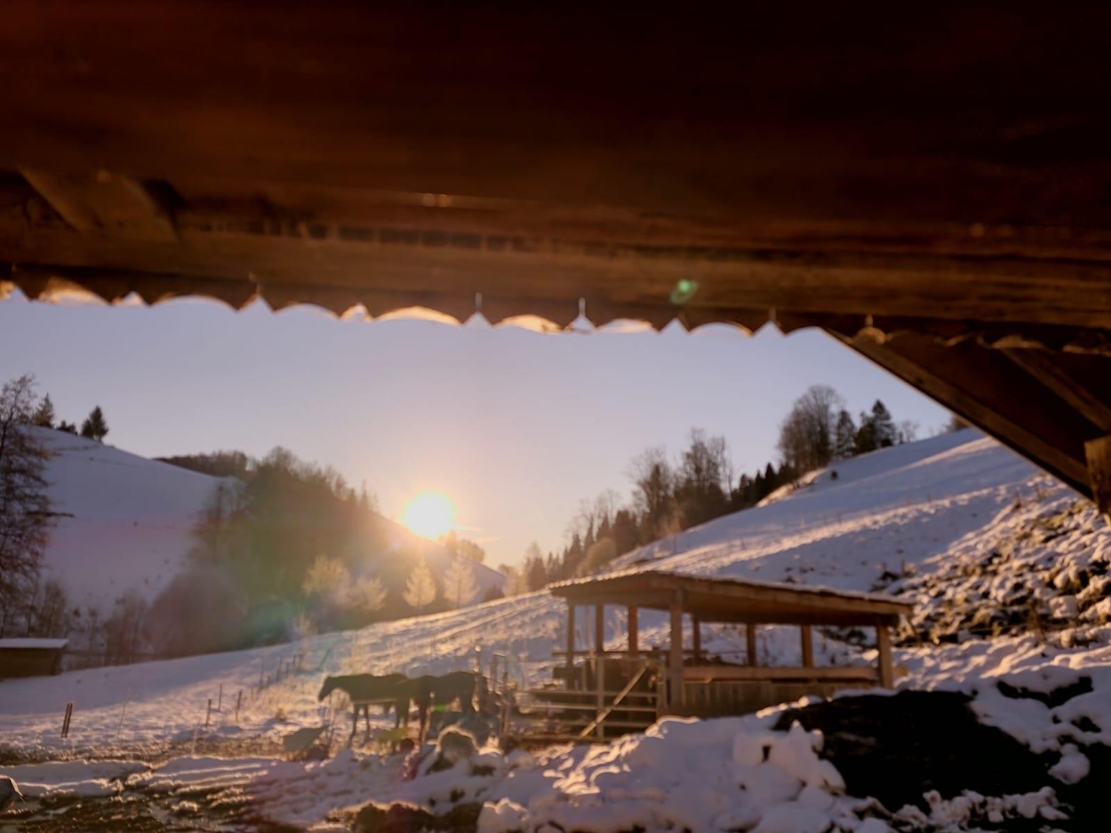 Der Eingang der Wohnung befindet sich direkt neben dem Jungviehstall. Morgens können somit gleich junge Kühe und Kälber begrüßt werden.