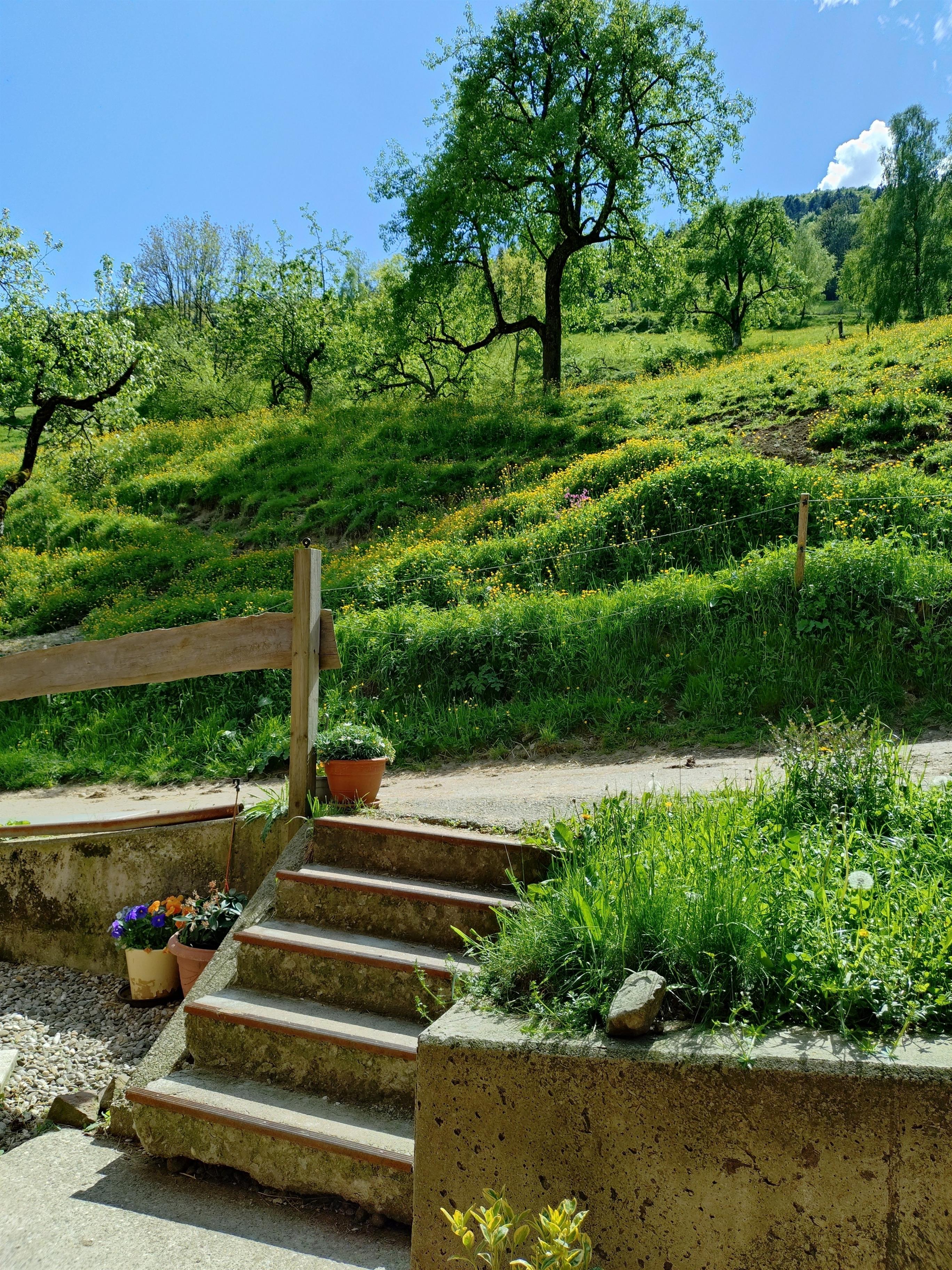 Wir haben Hinterwälder Kühe und original braunvieh der alten Zuchtrichtung, beide Rassen vom Aussterben bedroht. Braunvieh gibt es deutschlandweit noch 3500 Stück von der alten Zuchtrichtung! Bei uns leben davon 10 Stück.