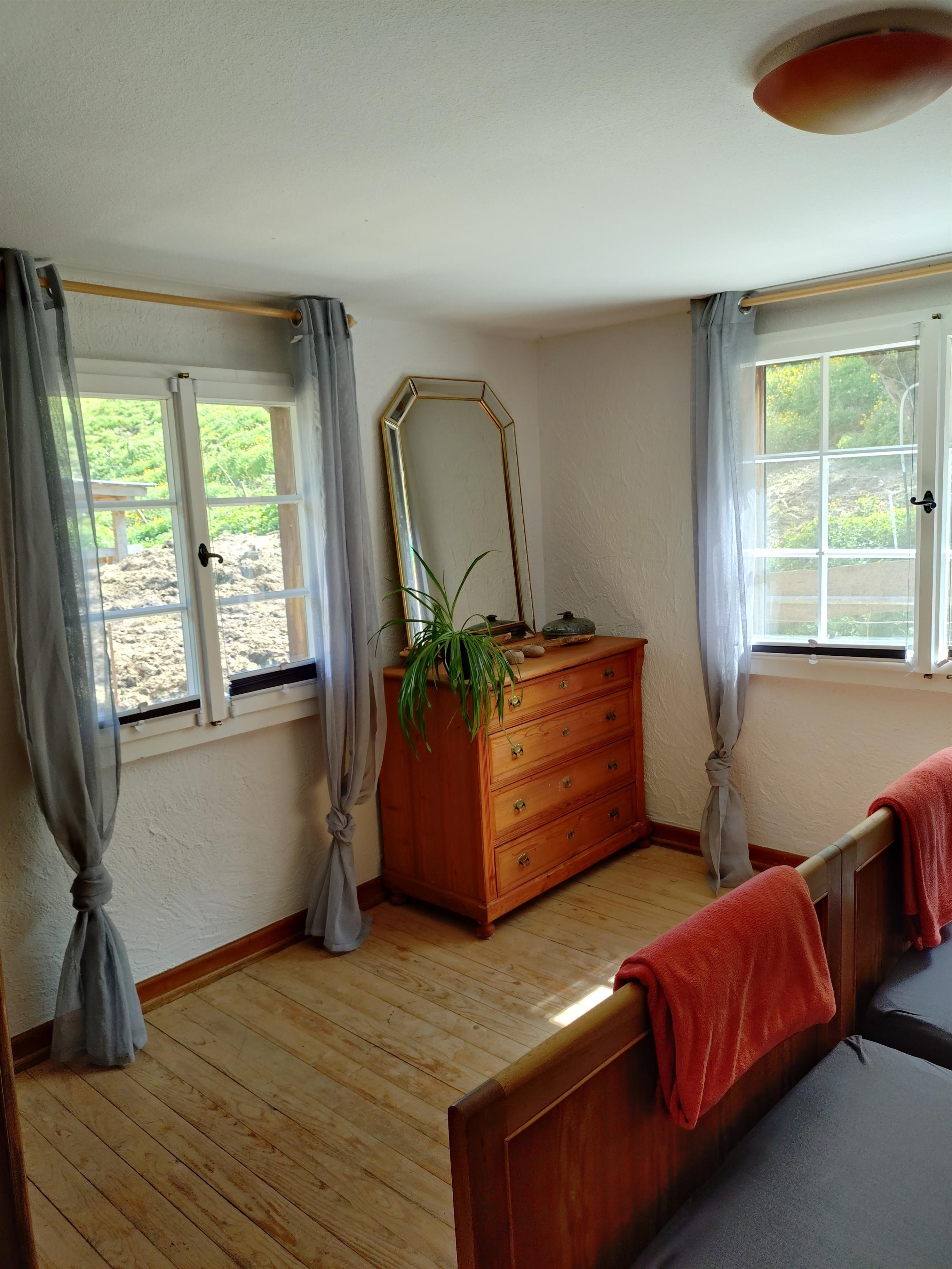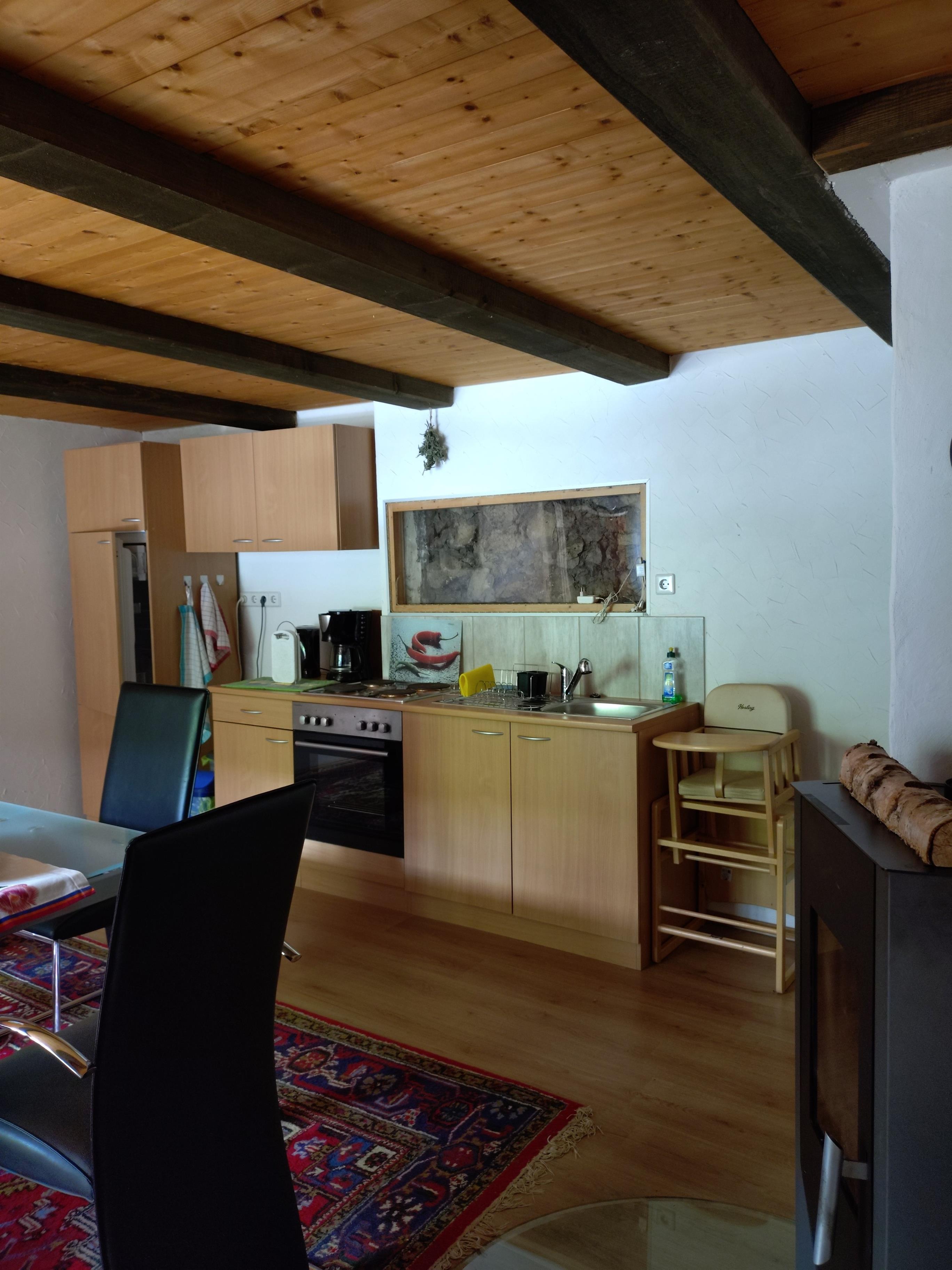 Die Ferienwohnung verfügt über ein Bad mit WC und Dusche , einem Wohnzimmer mit Typischem Ofen mit Gunst die nach einer Winterwanderung oder Skitour zum Aufwärmen einlädt , einem geräumigen Schlafzimmer und einer großzügigen Küche in der ein Schwedenofen steht mit dem zusätzlich Geheizt werden kann.