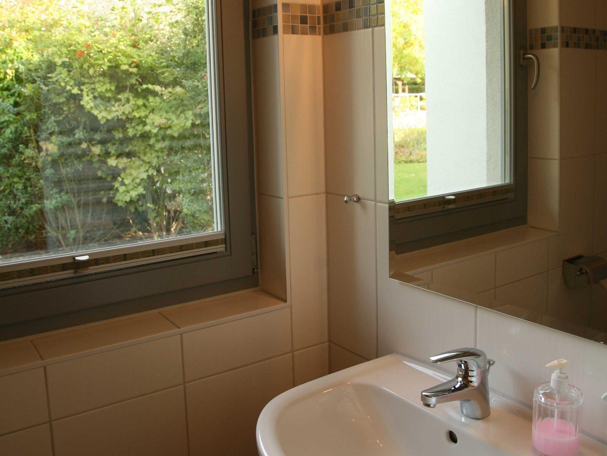 Das Erdgeschoss überzeugt mit einem offenen Wohn- und Essbereich, in dem Sie es sich am Kamin auf der großen Eckcouch mit Sessel und Hocker gemütlich machen können. Die Küche ist bestens ausgestattet mit Geschirrspüler, Cerankochfeld, Mikrowelle, Kühlschrank, Toaster und einem modernen Airfryer (Heißluftfritteuse). Ein separates Gäste-WC befindet sich ebenfalls im Erdgeschoss.