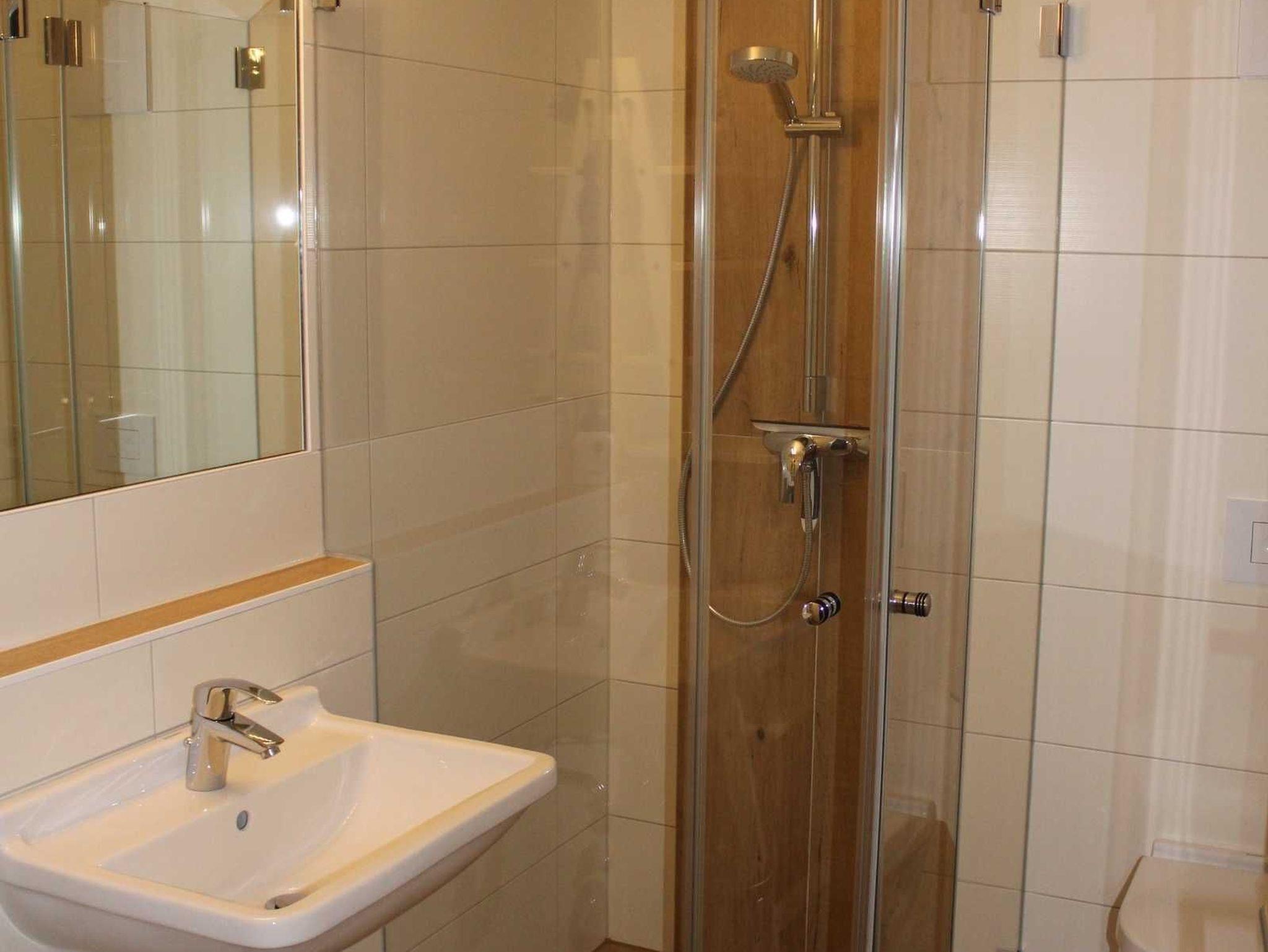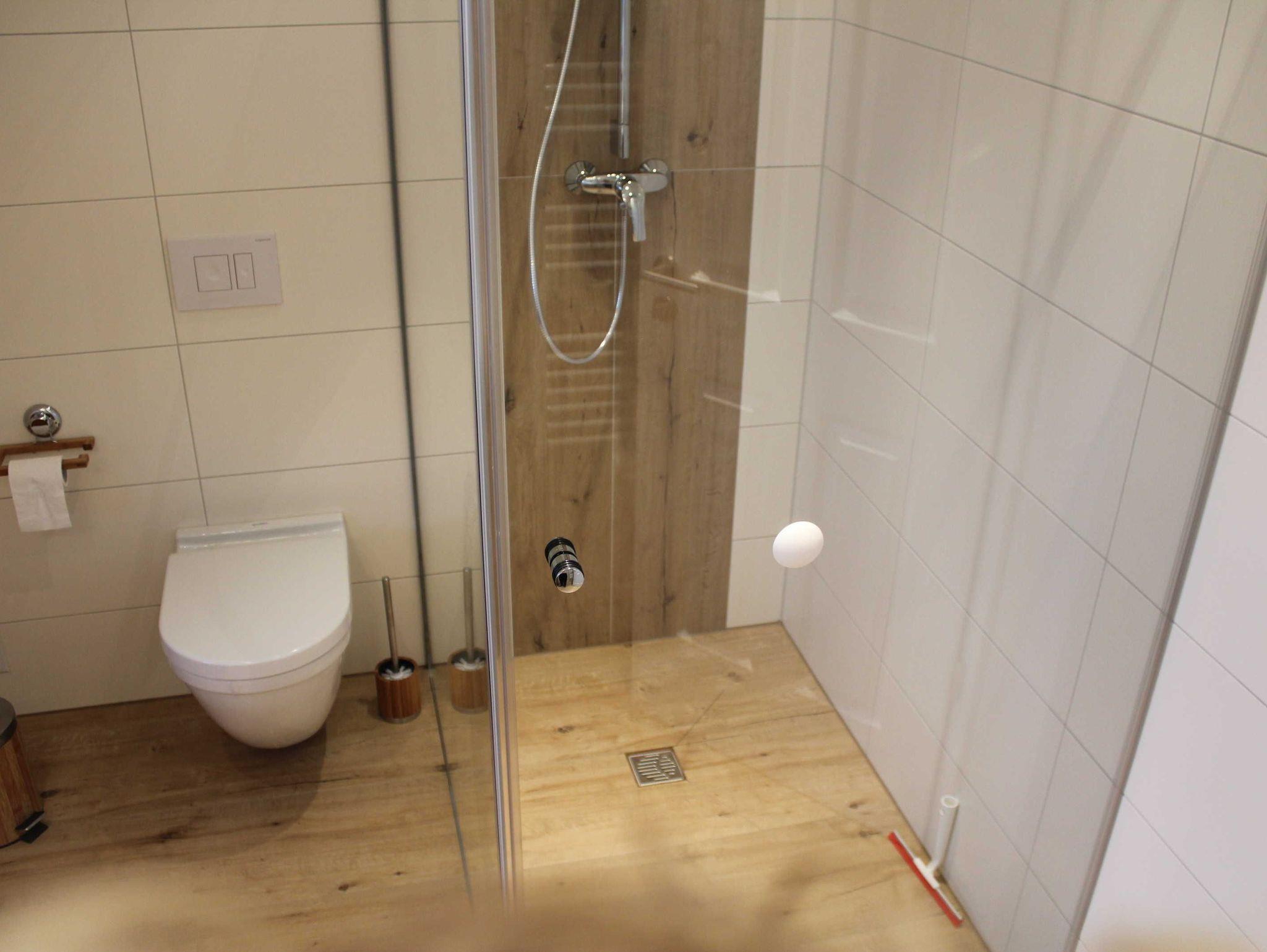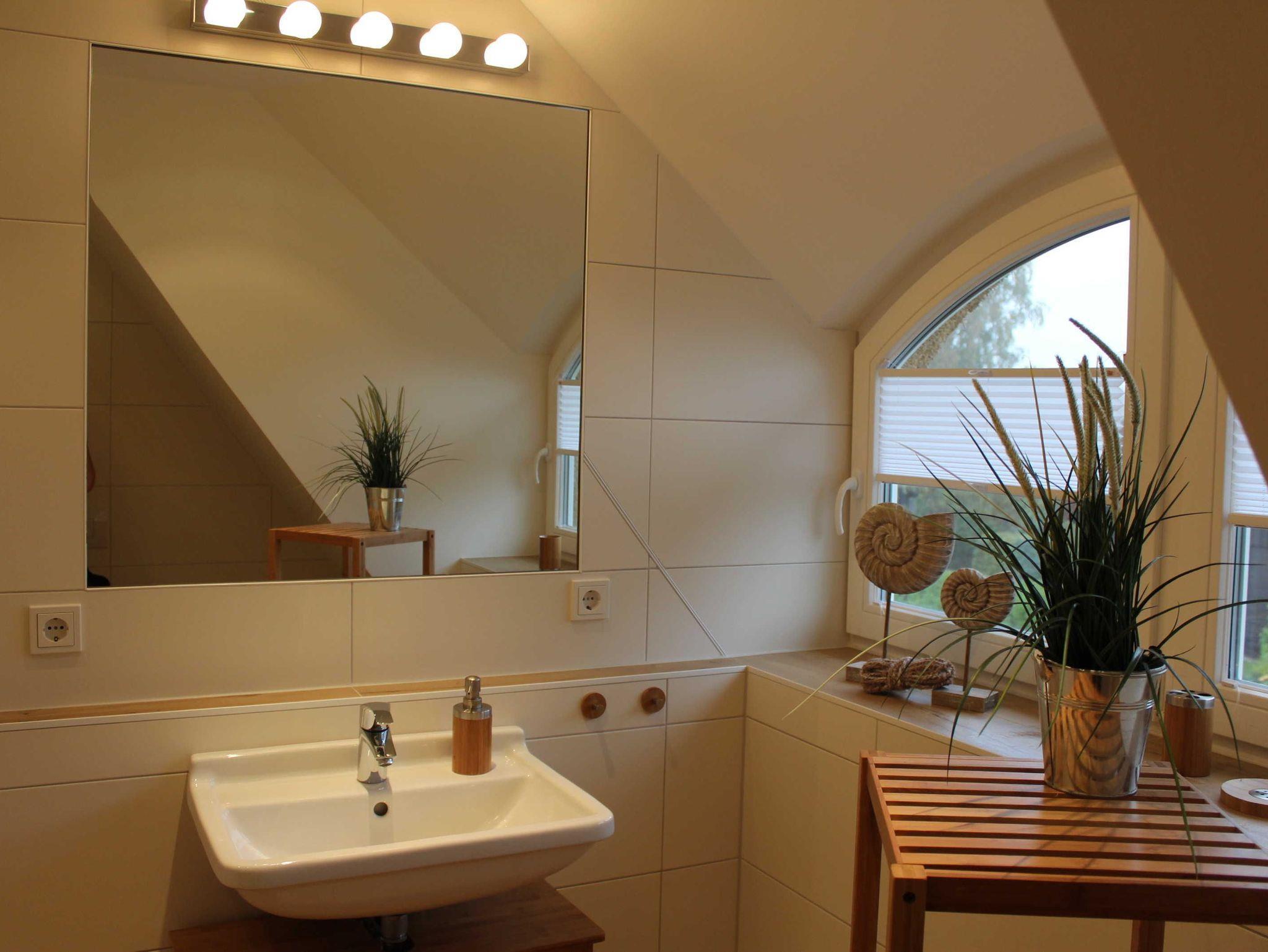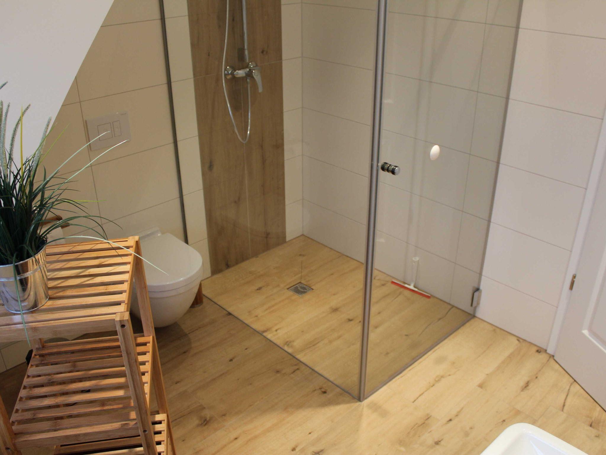 Im Ferienhaus befindet sich auf jeder Etage ein Badezimmer mit ebenerdiger Dusche und Handtuchheizkörper. Ein Föhn wird ebenfalls gestellt.