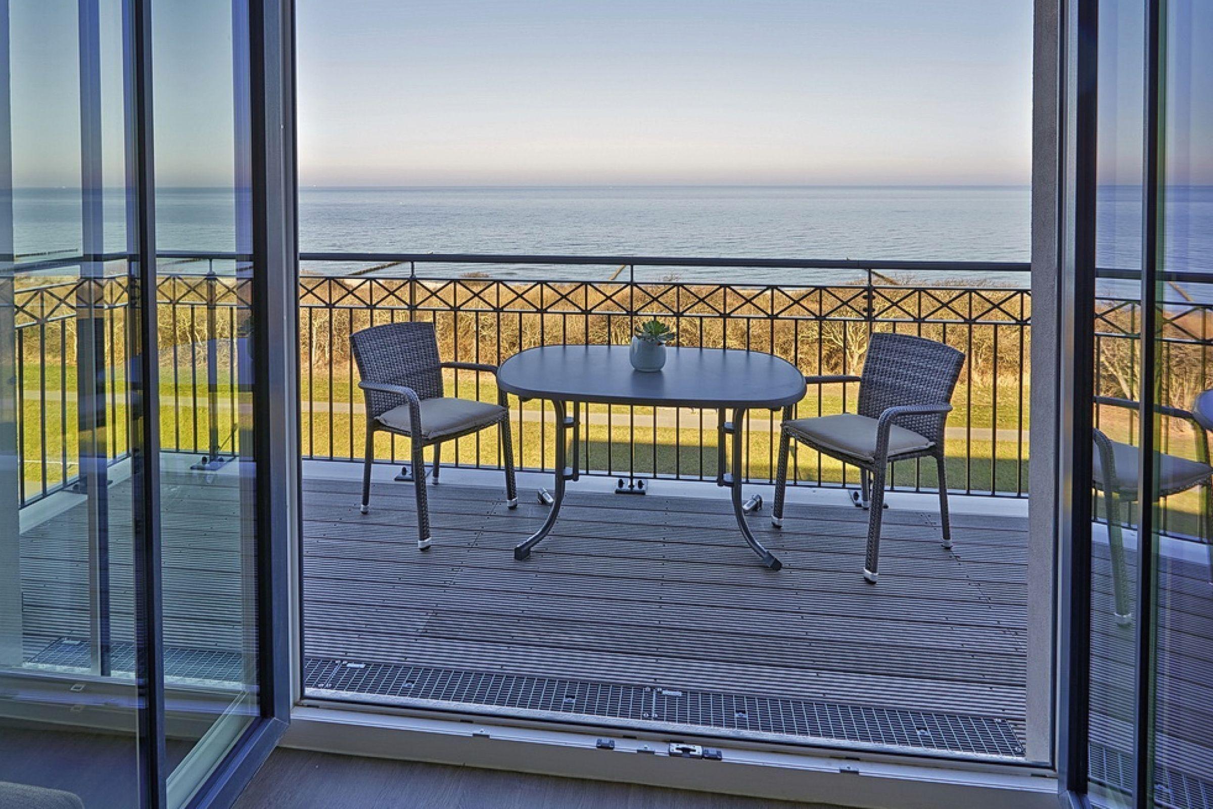 Auf der Dachterrasse, die zur Meerseite gelegen ist, stehen Ihnen Terrassenmöbel zur Verfügung. Hier können Sie mit Blick auf die Ostsee entspannen.