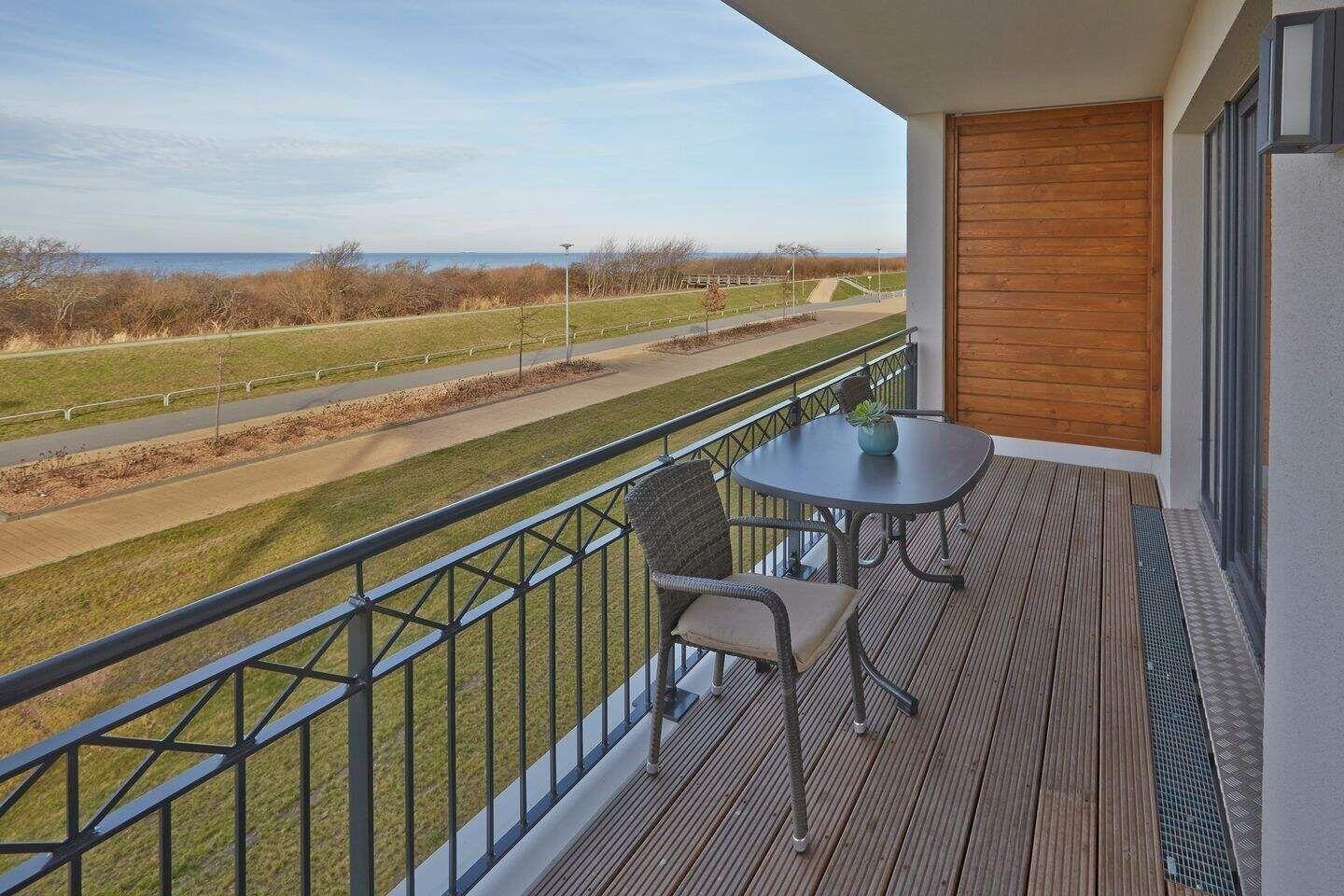 Auf dem überdachten Balkon, der zur Meerseite gelegen ist, stehen Ihnen Terrassenmöbel zur Verfügung. Hier können Sie beim Rauschen des Meeres entspannen.