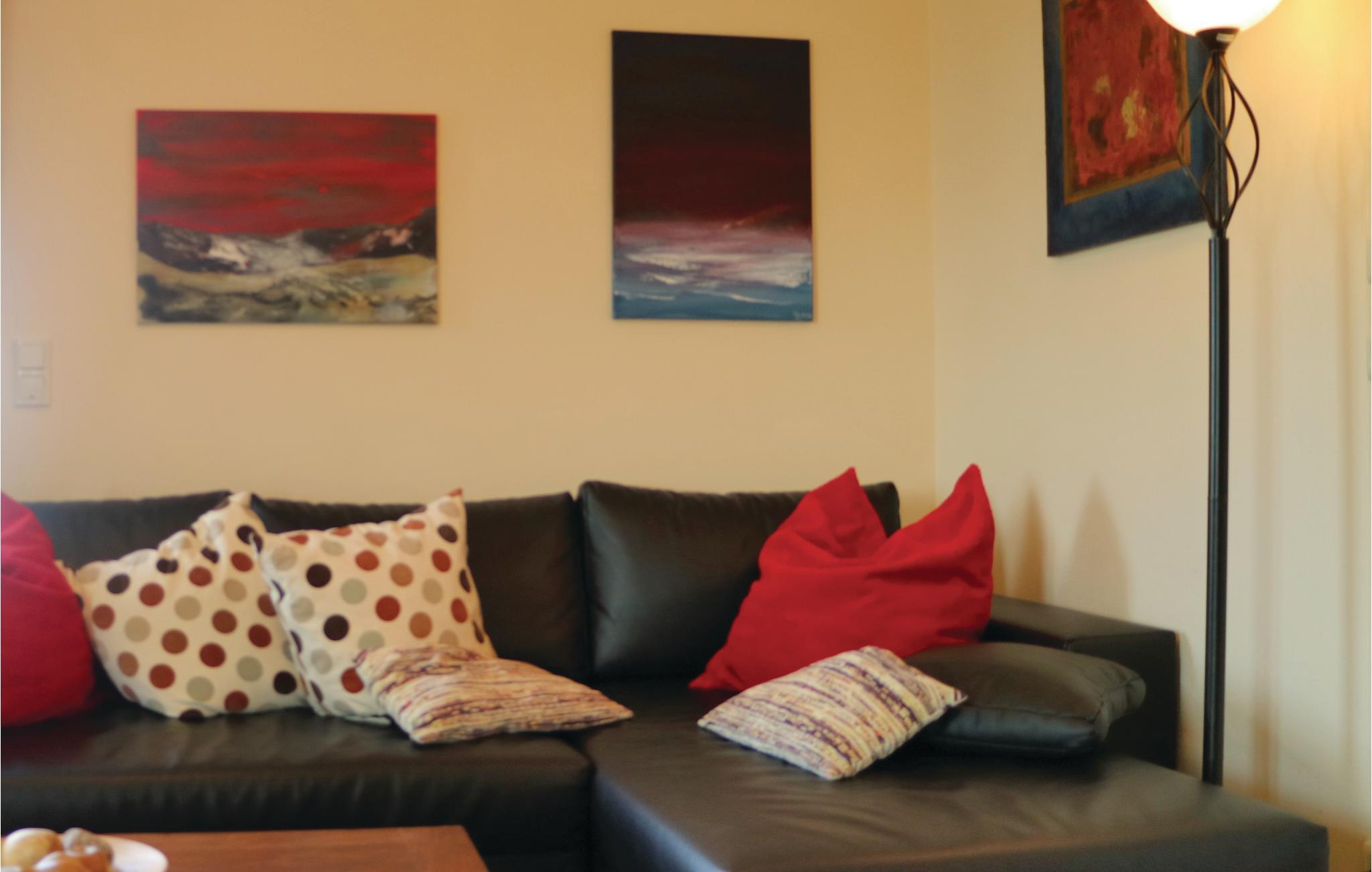 Den er indrettet med kvalitetsmaterialer som gulve af egetræ, original kunst af en lokal kunster og et moderne elementkøkken. Fra stuen med spiseafdeling og soveværelser, samt fra altanen er der en skøn udsigt over vandet. Der er en ekstra soveplads i stuen.