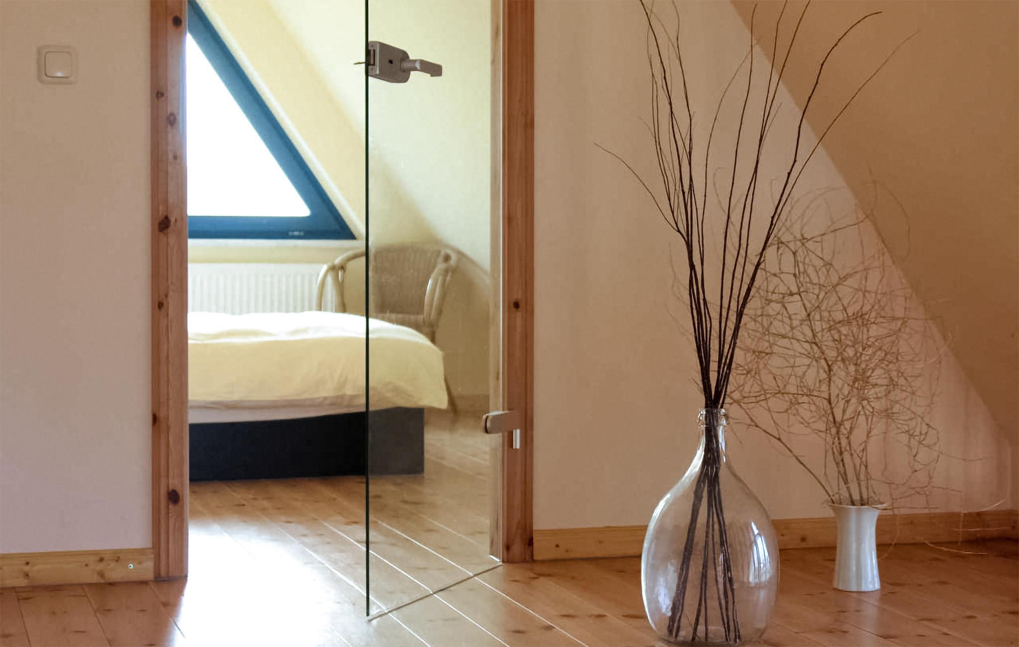 Soveværelset har plads til 2 personer i en dobbeltseng. Et andet soveværelse er på øverste etage og er også udstyret med en dobbeltseng.