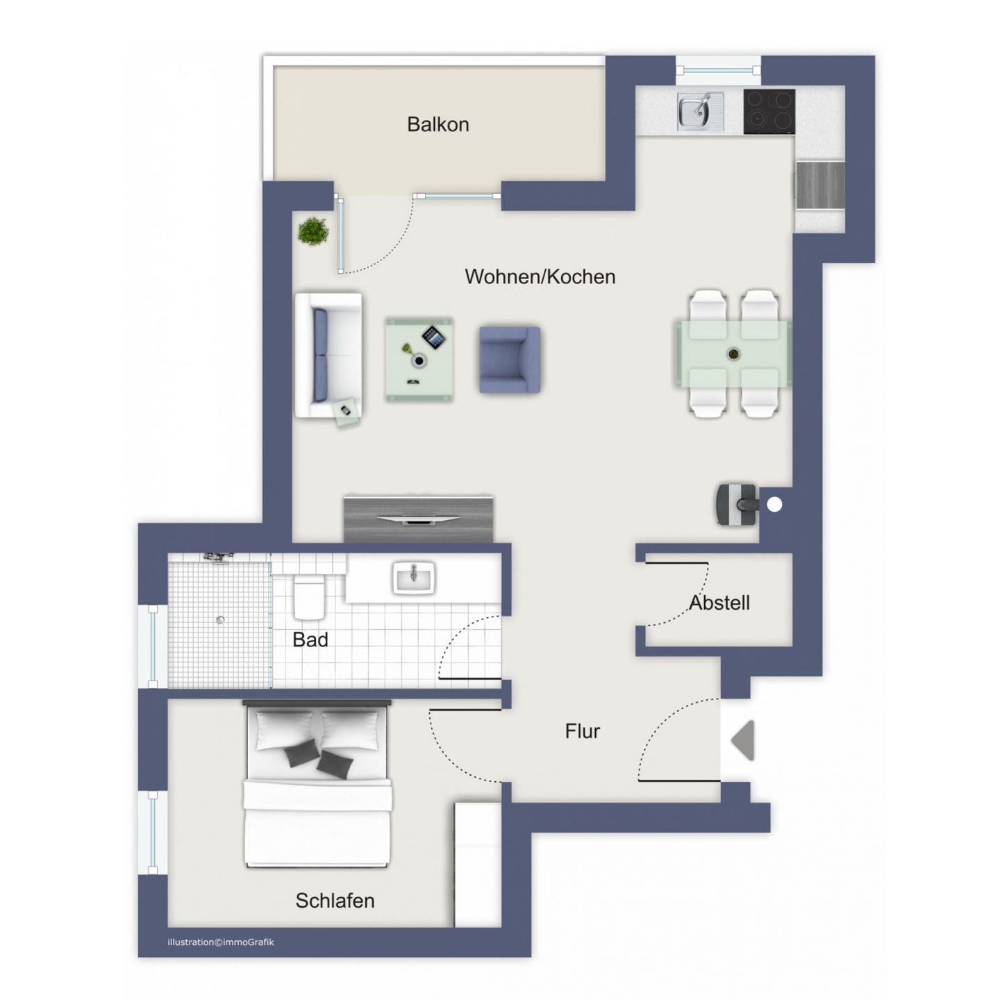 Im Wohnbereich laden Sie eine gemütliche Eckcouch mit Schlaffunktion (150x200 cm) und ein Relax Sessel zu gemütlichen Abenden ein. Zu Ihrer Unterhaltung stehen Ihnen ein Radio, ein CD-Player, ein DVD-Player sowie ein Flachbild-TV und kostenloses WLAN zur Verfügung. Der angrenzende Essbereich bietet Ihnen genügend Platz und Komfort für gemeinsame Mahlzeiten.