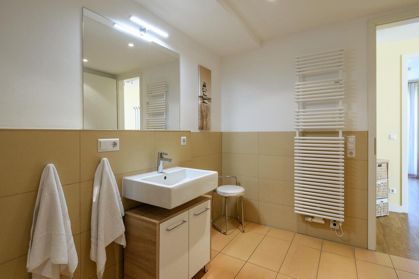 Noch einige HINWEISE: Es handelt sich um eine Nichtraucherwohnung. Zu Ihrer Unterkunft gehört ein kostenfreier PKW-Stellplatz, direkt am Wohnungseingang. Ihre Fahrräder können im ABSCHLIESSBAREN FAHRRADRAUM der Tiefgarage im Gebäude sicher aufbewahrt werden. Ein Wäscheset kann pro Person kostenpflichtig dazugebucht werden oder wird vom Gast selbst mitgebracht. Kinderreisebett und Hochstuhl sind separat zu buchbar. Eine Waschmaschine und ein Trockner stehen im Erdgeschoss der Villa, dem Waschraum, zur Verfügung (gegen Gebühr / 0,50 € Münzen).