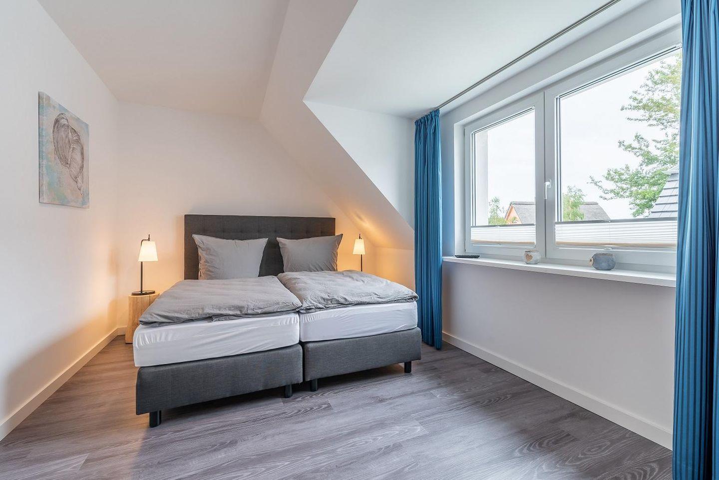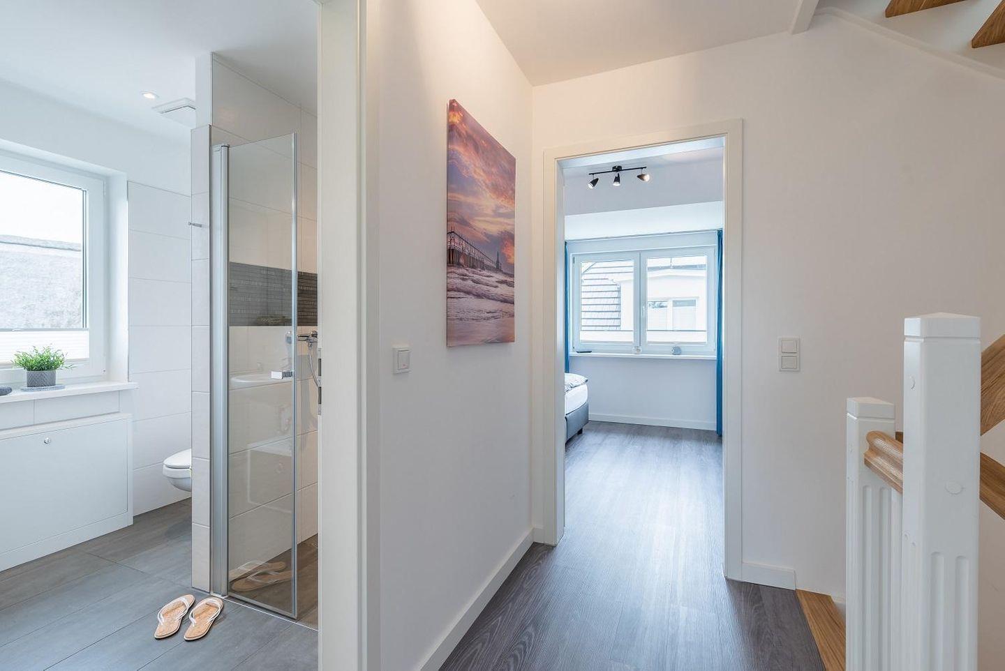 Dusche. Zwei Schlafzimmer mit jeweils einem 1,80 x 2,00 m Bett sowie einem
