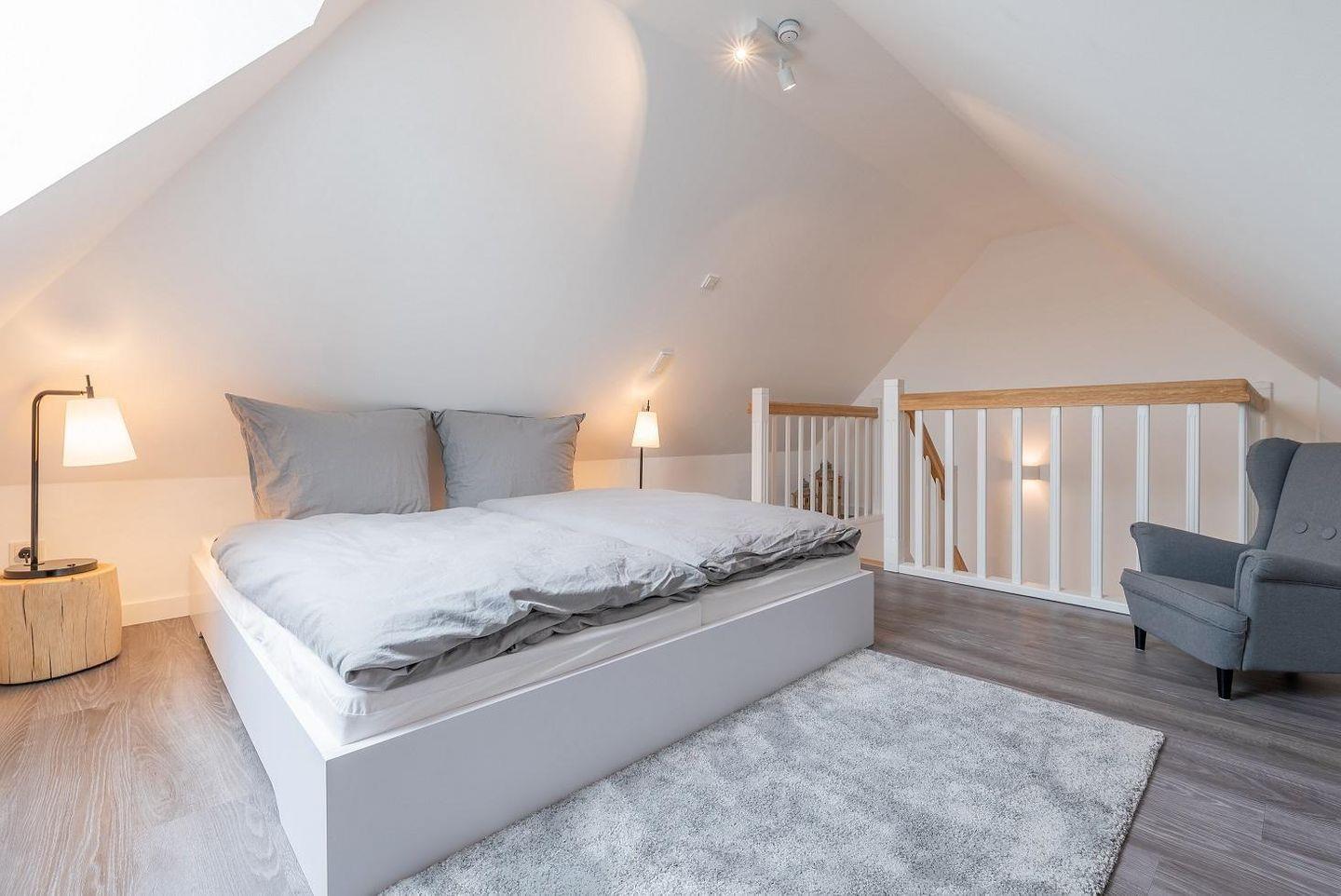 Dachspitzboden befindet sich ein weiteres Doppelbett (1,60 x 2,00 m). Für unsere