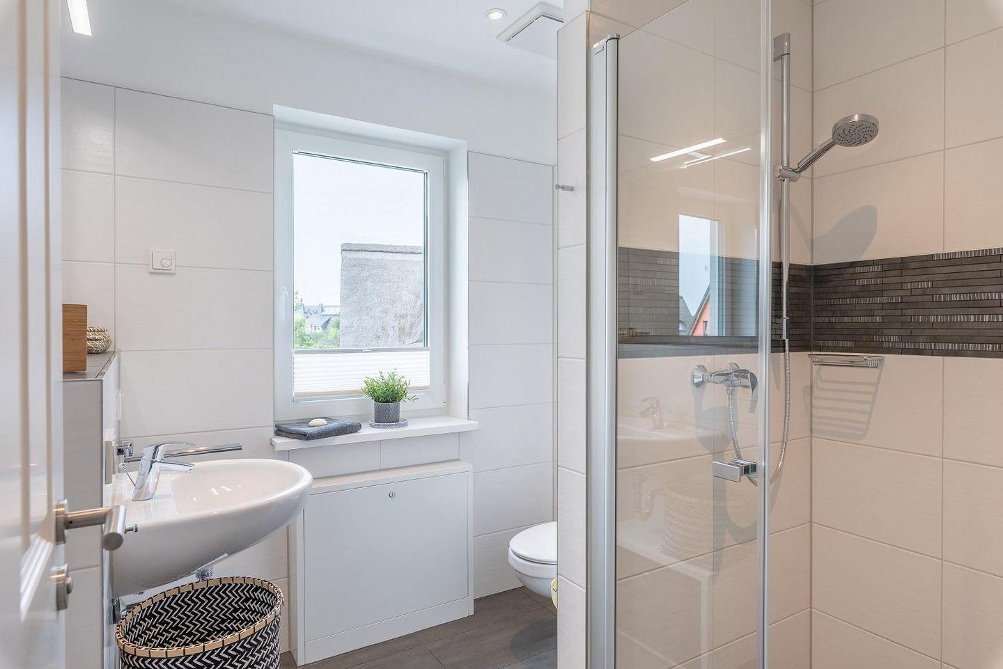 Im ersten Obergeschoss befindet sich ein weiteres großes Tageslichtbad mit