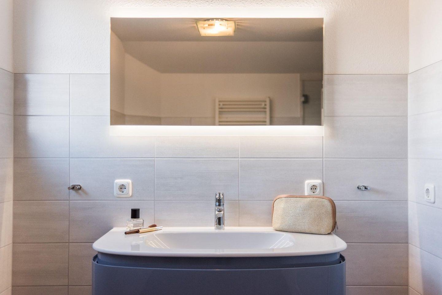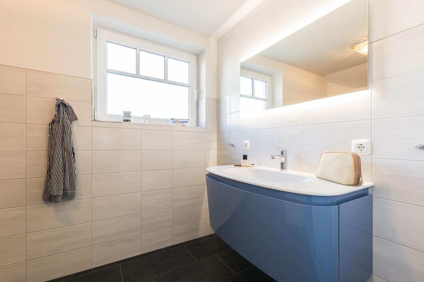 Kühlschrank. Das Badezimmer überzeugt mit einer ebenerdigen geräumigen Dusche.