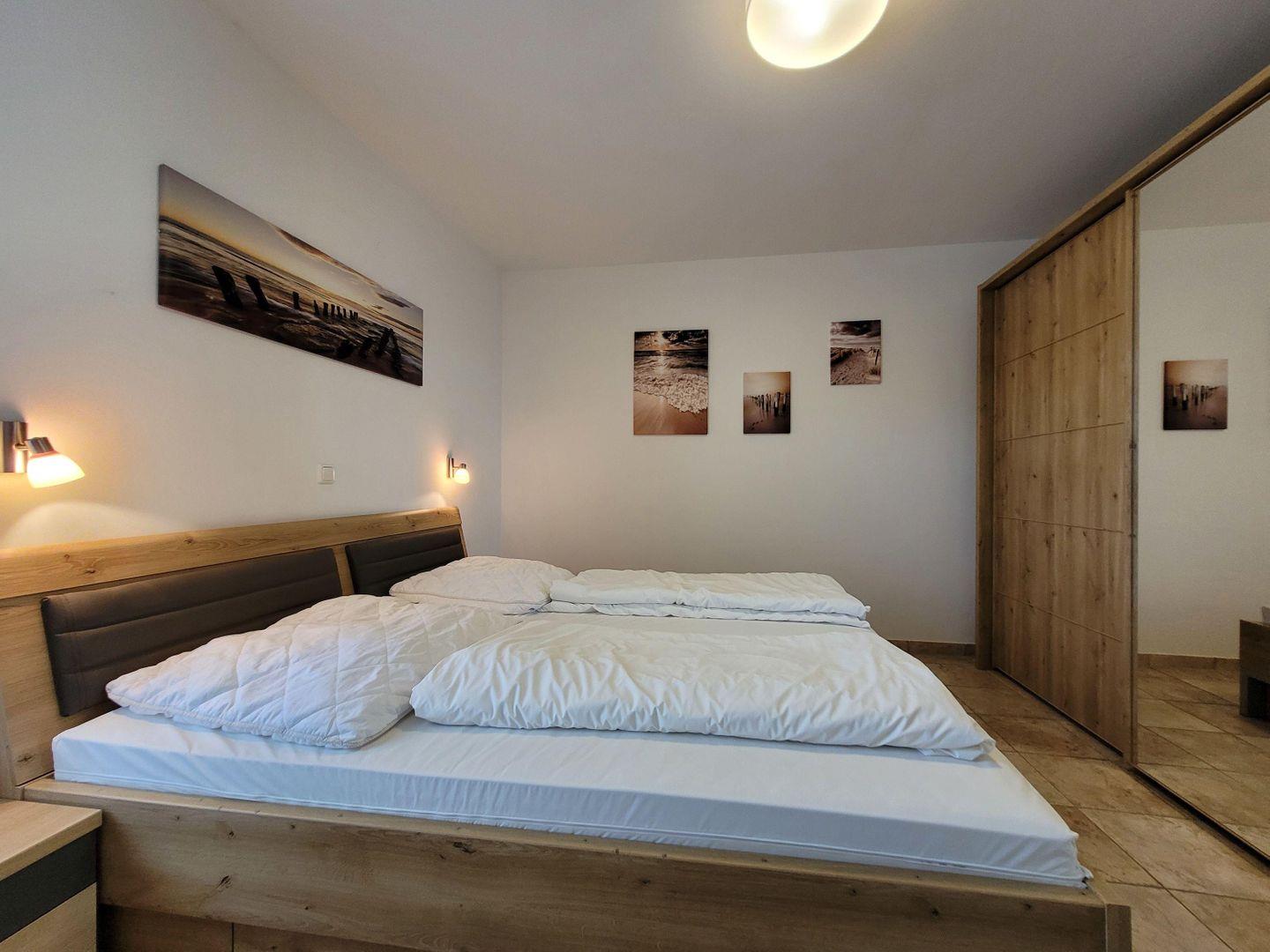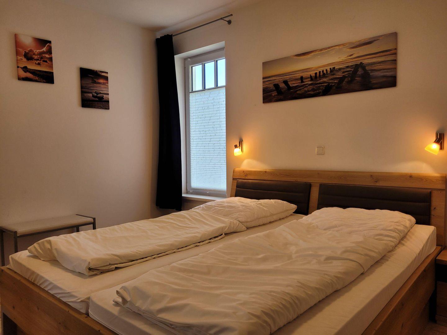 Das kleinere Schlafzimmer besitzt ein Doppelbett mit den Maßen 140 x 200 cm und
