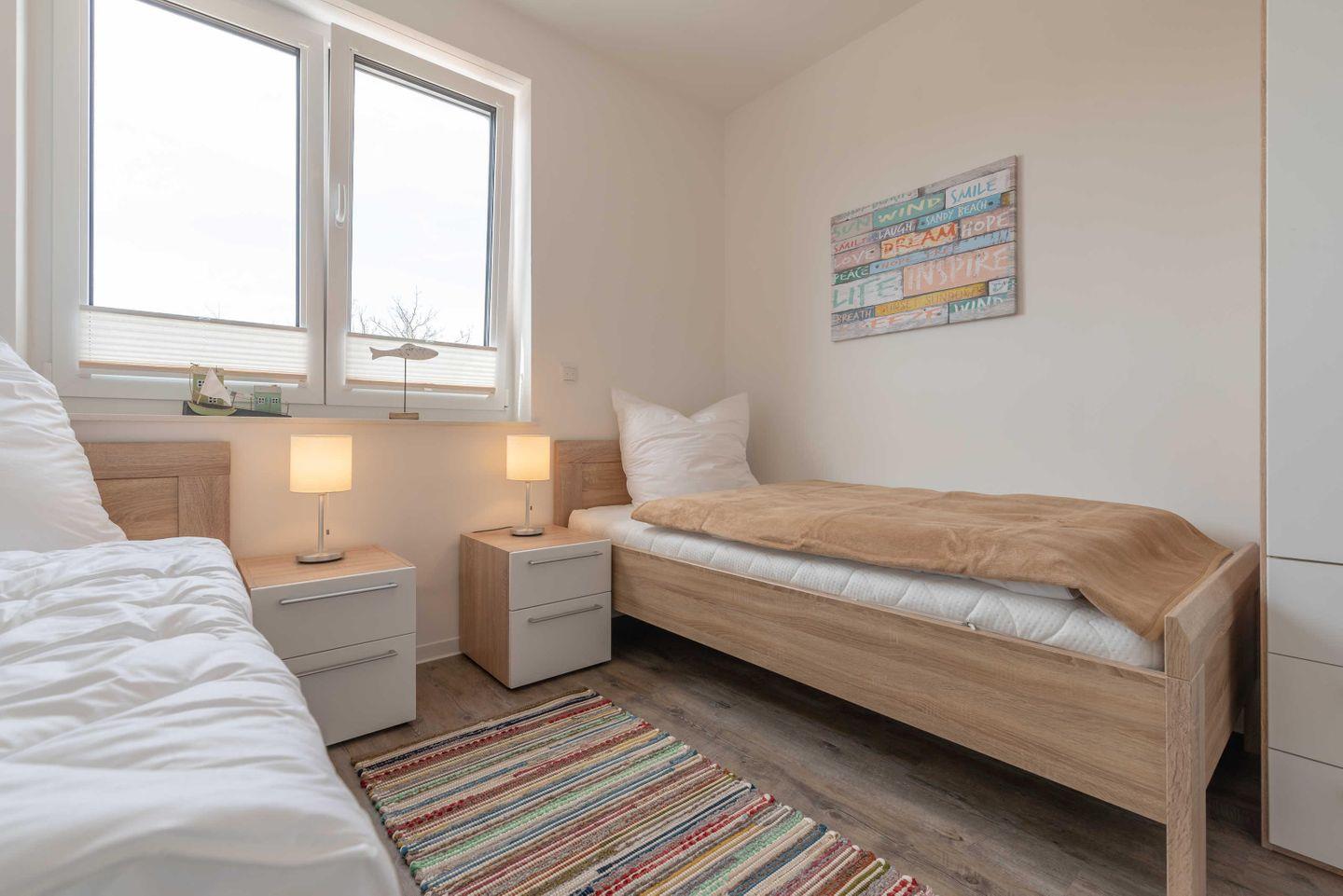 Wohnbereich und im Schlafraum mit den zwei Einzelbetten sind Flachbildfernseher