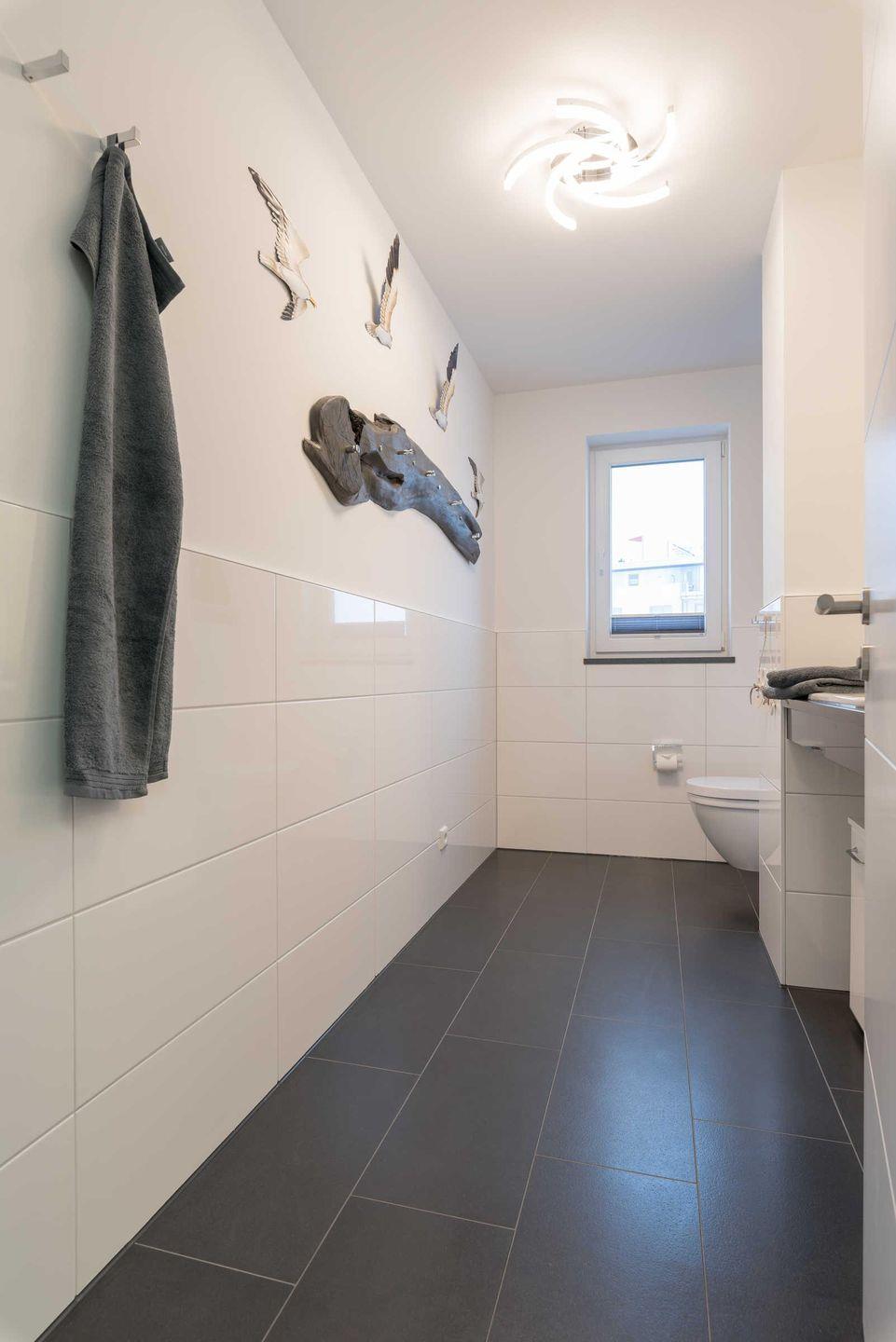einem Waschtisch samt Unterschrank ausgestattet. Das Badfenster hat ebenfalls