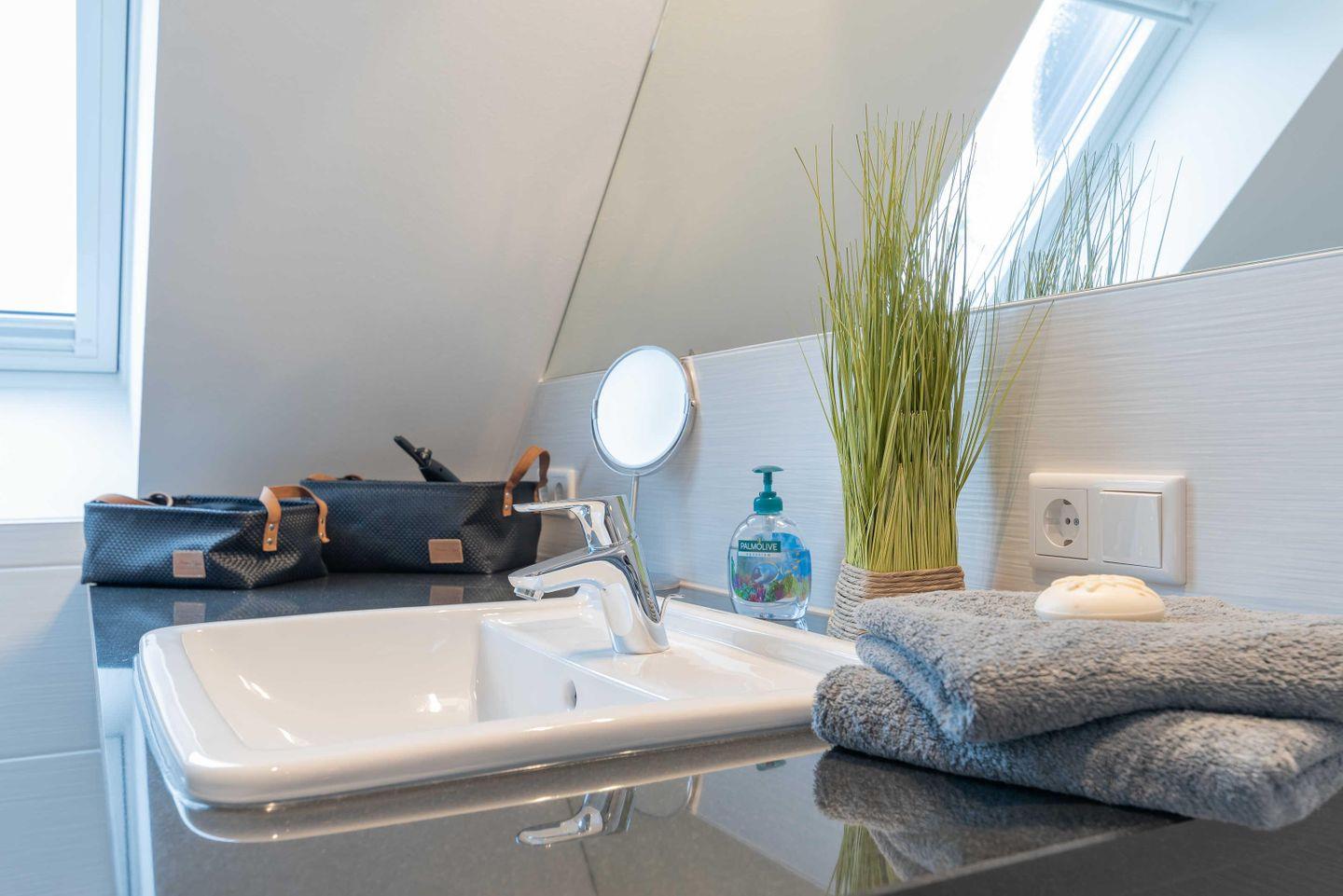 Starten Sie Ihren Urlaubstag im modernen Tageslicht-Badezimmer mit einem Blick