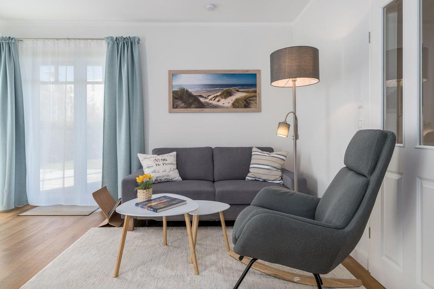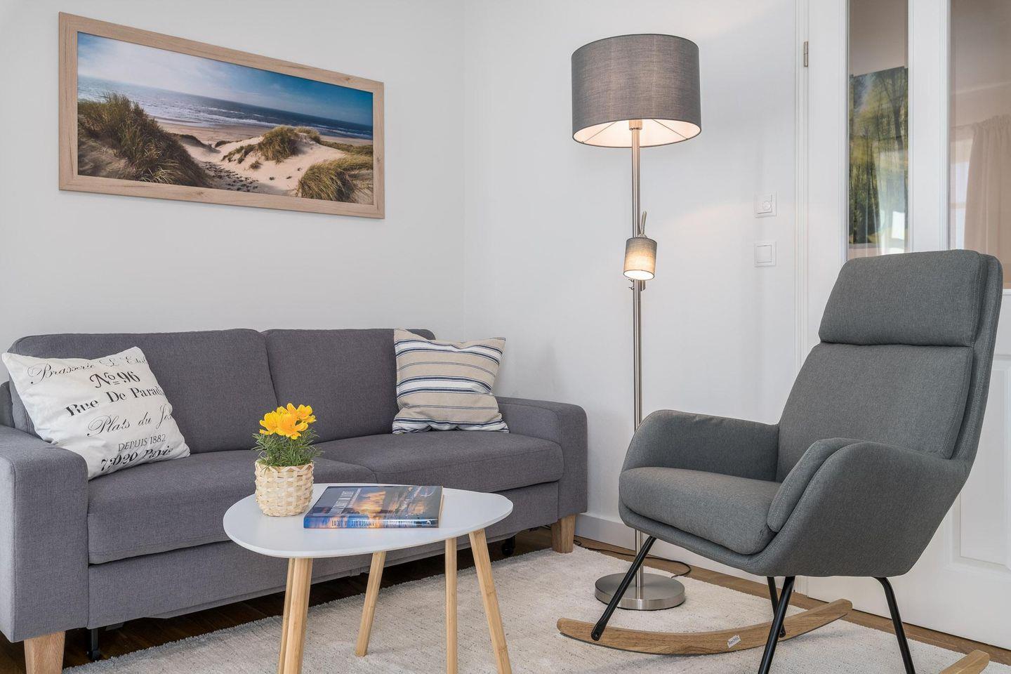 Schaukelsessel, ein TV-Flatscreen sowie ein DAB-Radio laden zum Verweilen ein.
