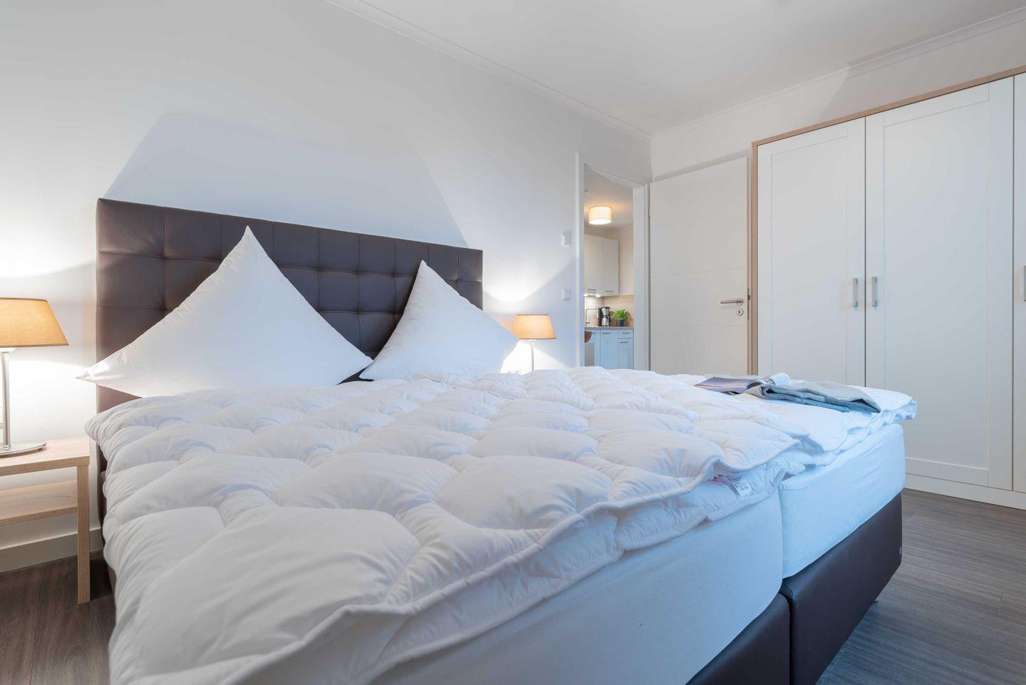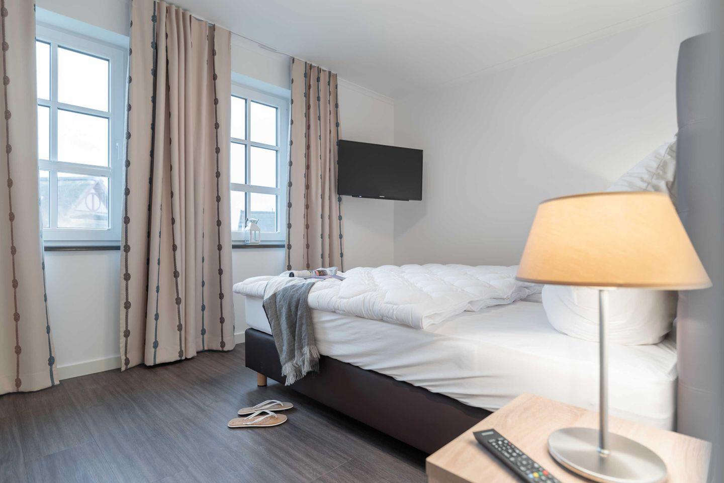 Kleiderschrank und einem Flat-TV. Im zweiten Schlafzimmer befinden sich