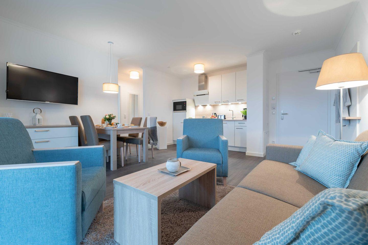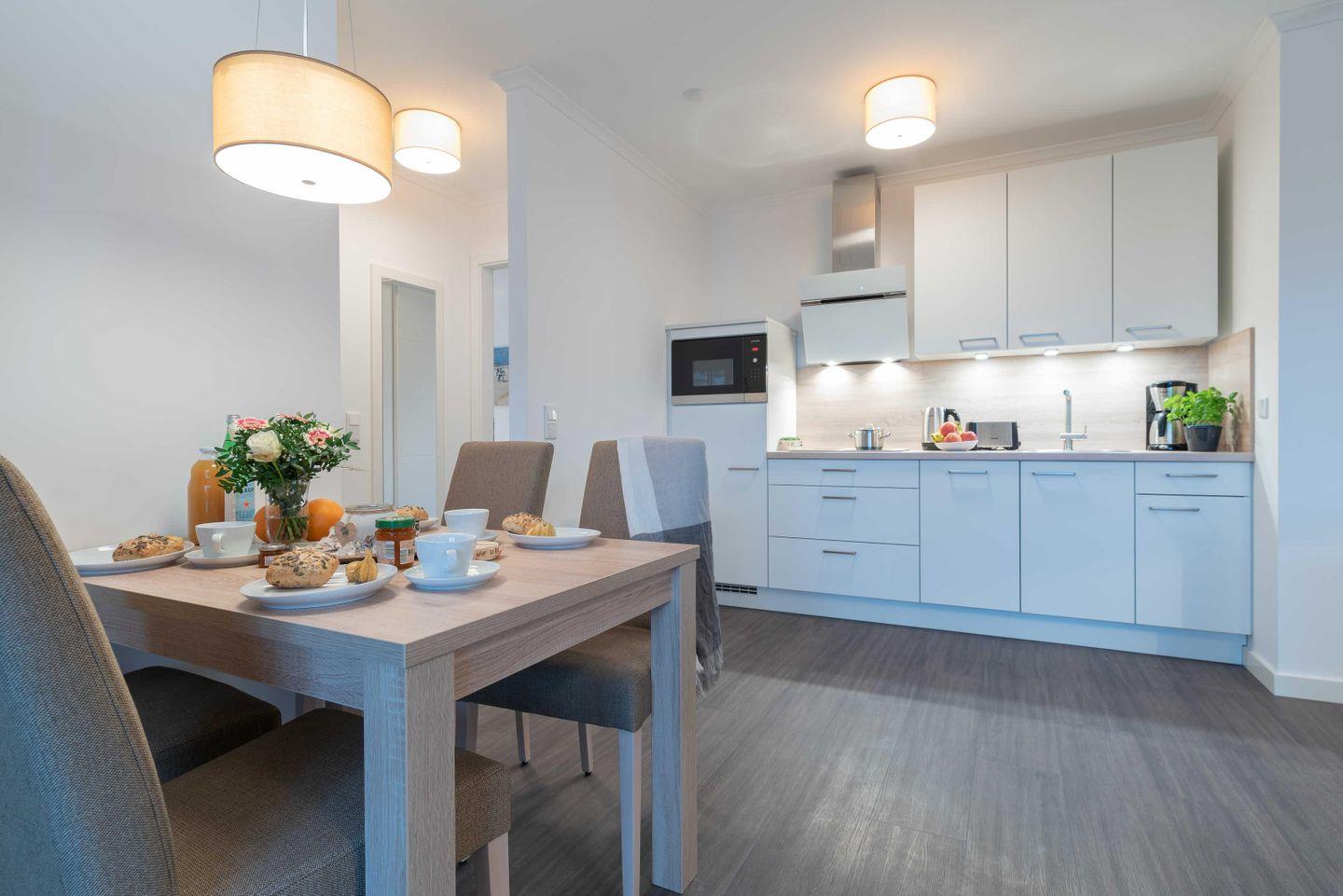 Das ca. 58 m² große Apartment Haus Dünenrose WE 05 „Lütt Matten“ in Börgerende bietet zwei Schlafzimmer, einen Balkon mit eingeschränktem Meerblick, eine offene Küche samt moderner Ausstattung, kostenloses WLAN und einen Privatparkplatz. Bis zu vier Gäste genießen hier Komfort auf der ersten Etage, wenige Meter vom Strand und Restaurants entfernt.