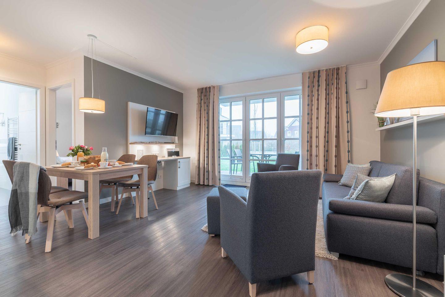 Das Haus Seegras WE 01 in Börgerende bietet auf ca. 58 m² Wohnfläche zwei Schlafzimmer, einen Wohnbereich mit offener Küche und modernen Annehmlichkeiten wie WLAN, Kabel-TV und Spülmaschine. Ein privater Garten mit Terrasse, kostenlosem Parkplatz sowie die Nähe zum Strand und zu Restaurants machen dieses Haus ideal für bis zu vier Gäste und maximal zwei Haustiere (10€/Nacht pro Haustier, sowie einmalig Haustierendreinigung in Höhe von 25€).