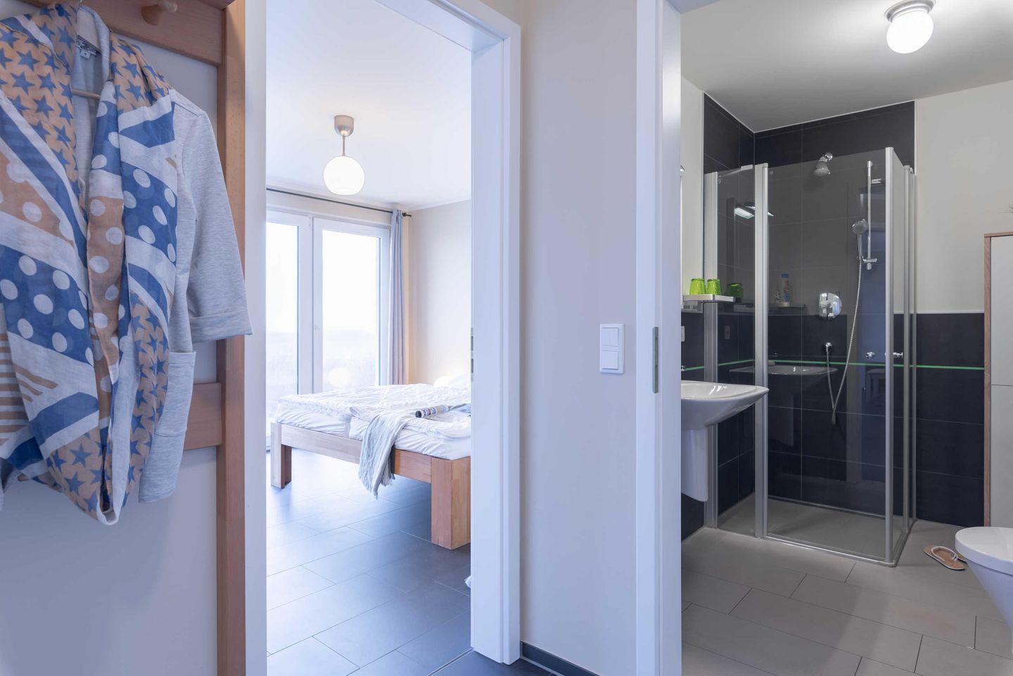 Die komfortable Unterkunft Haus Calmsailing WE 1.2 in Börgerende bietet auf ca. 60 m² ein Schlafzimmer, ein modernes Bad und einen offenen Wohn-Küchenbereich. Ausgestattet mit kostenlosem WLAN, Balkon mit Meerblick, Sauna, TV, Spülmaschine und eigenem Parkplatz eignet sie sich ideal für bis zu vier Personen. Kinder sind willkommen.