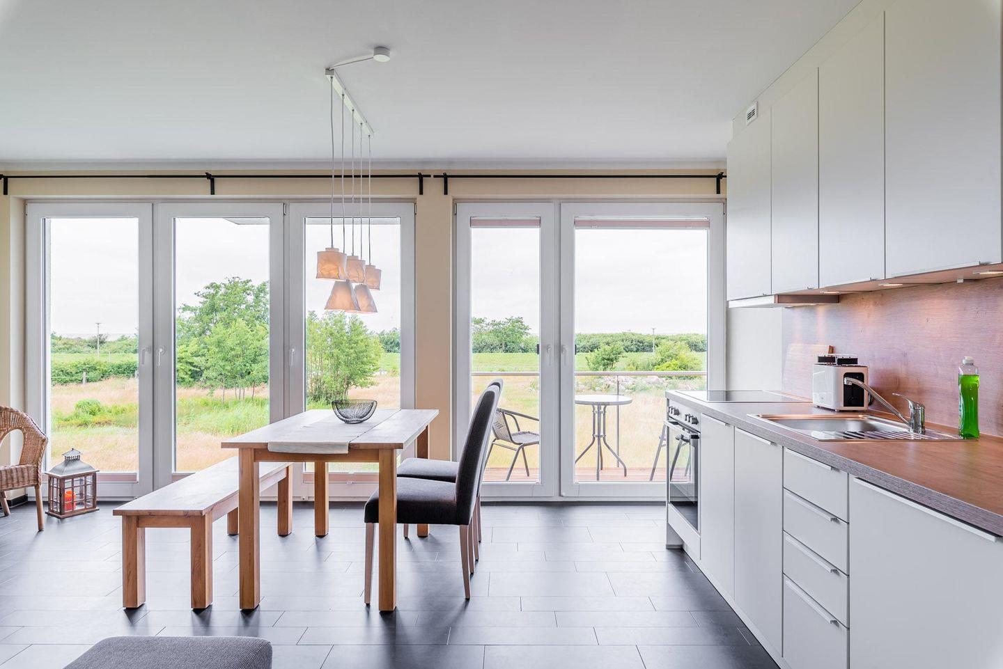 Träumen mit Blick auf den Deich ein. Die offene Küche mit großzügigem