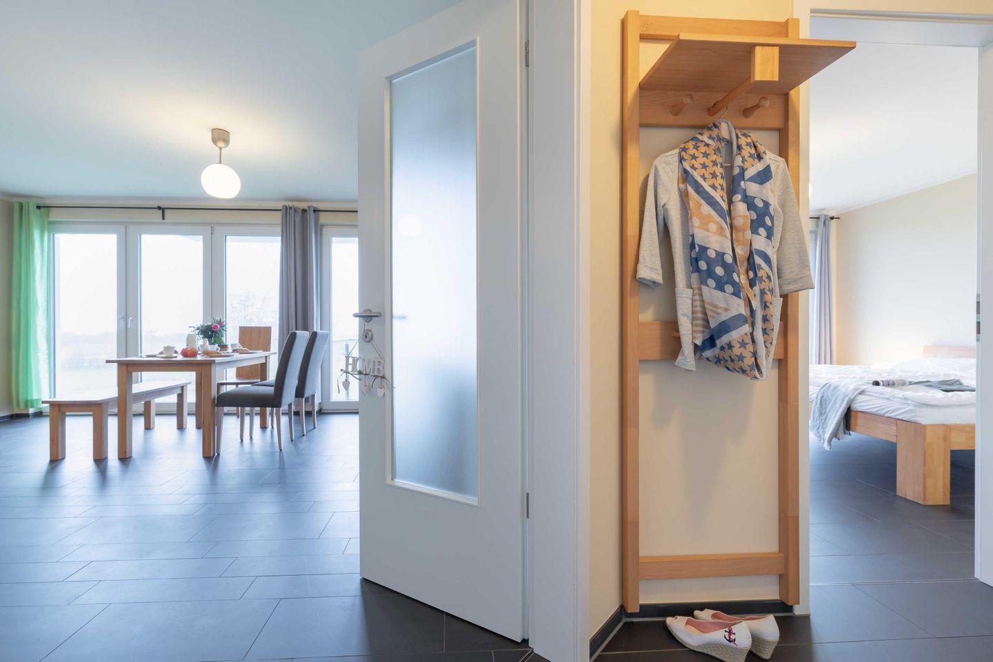 Im Flur der Ferienwohnung befindet sich genügend Platz für die Ablage von