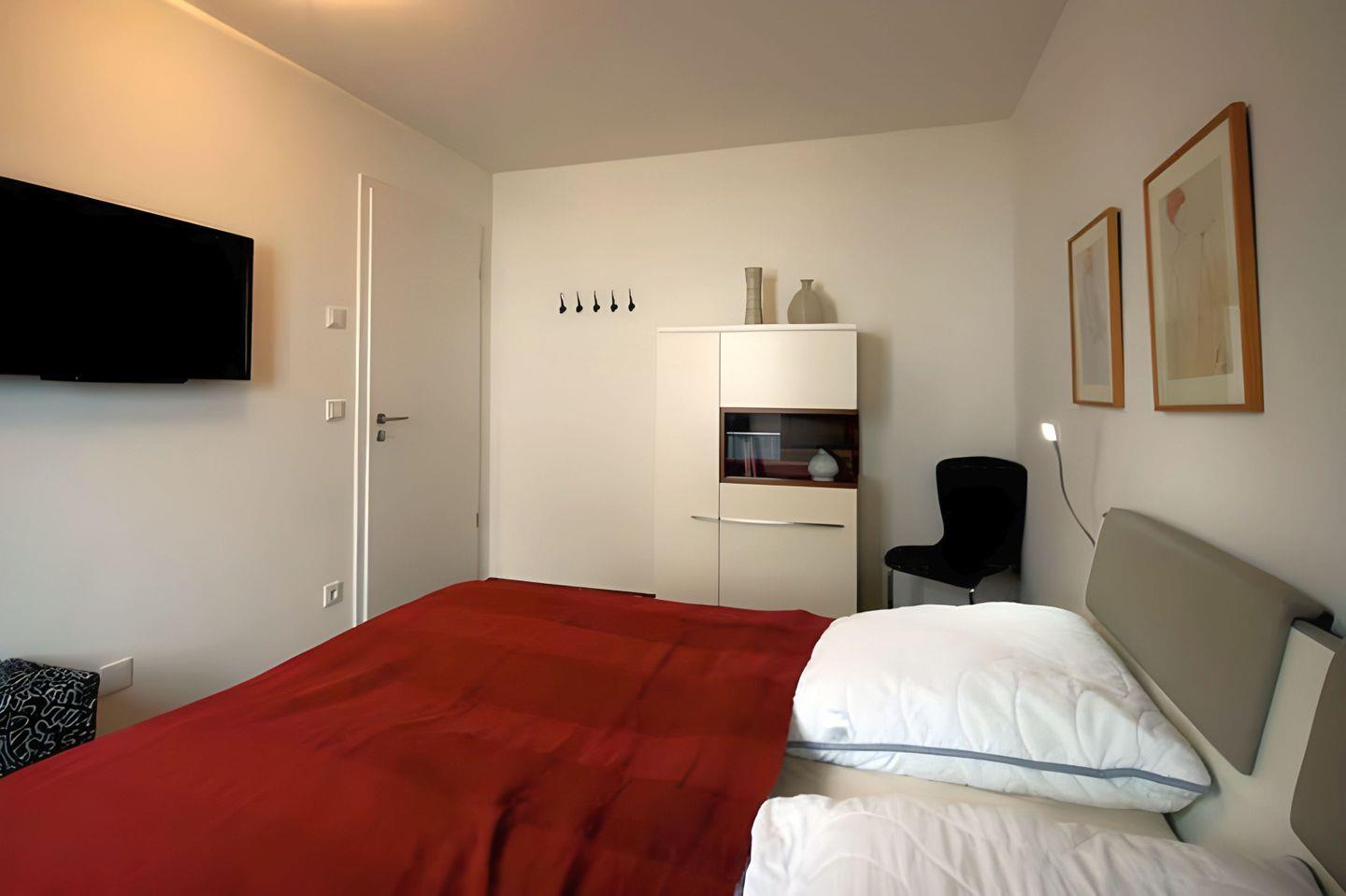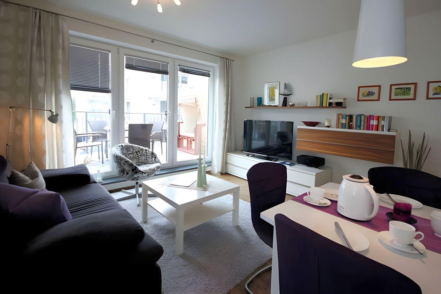 Die gemütliche kleine Ferienwohnung bietet ausreichend Platz für bis zu drei Personen. Der offene WOHNBEREICH empfängt Sie mit einem gemütlichen Sofa inklusive Schlaffunktion, einem Flatscreen-TV und einem Radio. Die angrenzende moderne KÜCHE ist mit hochwertigen Einbaugeräten der Marke Siemens ausgestattet (Kühlschrank mit Gefrierfach, Backofen mit Vollauszug, Mikrowelle mit Grillfunktion, Kaffeemaschine, Wasserkocher und Toaster). Ein Esstisch mit vier Stühlen lädt zu gemeinsamen Mahlzeiten. Im SCHLAFRAUM erwartet Sie ein Doppelbett mit integrierten Leselichtern, einem Flatscreen-TV und einer begehbaren Garderobe. Hier kann man nach einem bewegten Tag perfekt Entschleunigen und zur Ruhe kommen. Das BAD besticht mit einer bodengleichen Dusche, einem Granitwaschtisch, Handtuchtrockner und Fußtritt für unsere kleinen Gäste. Ein separater ABSTELLRAUM im Flur bietet Stauraum für Ihr Gepäck. Über den Wohnbereich gelangen Sie auf die herrliche DACHTERRASSE (Balkon) in Süd-West-Ausrichtung. Genießen Sie hier eine Auszeit bei frischer Küstenluft im komfortablen Strandkorb der Unterkunft. Eine Fußbodenheizung sorgt für wohlige Wärme in allen Räumen. Zu Ihrer Ferienwohnung gehört ein kostenfreier TIEFGARAGENSTELLPLATZ. Bitte beachten Sie die DURCHFAHRTSHÖHE von max. 1,90 m! Der im Gebäude installierte Aufzug erleichtert den Transport der mitgebrachten Koffer. Über den Innenhof der Villa erreichen Sie den ABSCHLIESSBAREN FAHRRADRAUM sowie den angrenzenden Waschraum. Eine Waschmaschine und ein Trockner stehen zu Ihrer Verfügung (gegen Gebühr/ Münzautomat). Hier noch einige HINWEIS: Es handelt sich um eine Nichtraucherwohnung. Es sind KEINE HAUSTIERE erlaubt. Wäscheset, Kinderreisebett und Kinderhochstuhl können kostenpflichtig zugebucht werden. Das kostenfreie WLAN in der Unterkunft ist ausschließlich für die Verwendung von Social Media und den Austausch von Bildern mit Familie und Freunden gedacht. Die Nutzung zum Streamen von Filmen ist nicht vorgesehen. Sichern Sie sich einen der begehrten STRANDKÖRBEe nur ein paar Meter entfernt von den rauschenden Wellen der Ostsee (Anfang Mai - Ende August) und buchen Sie jetzt zu besonderen Konditionen (12,00 € pro Tag oder 75,00 € pro Woche.)
