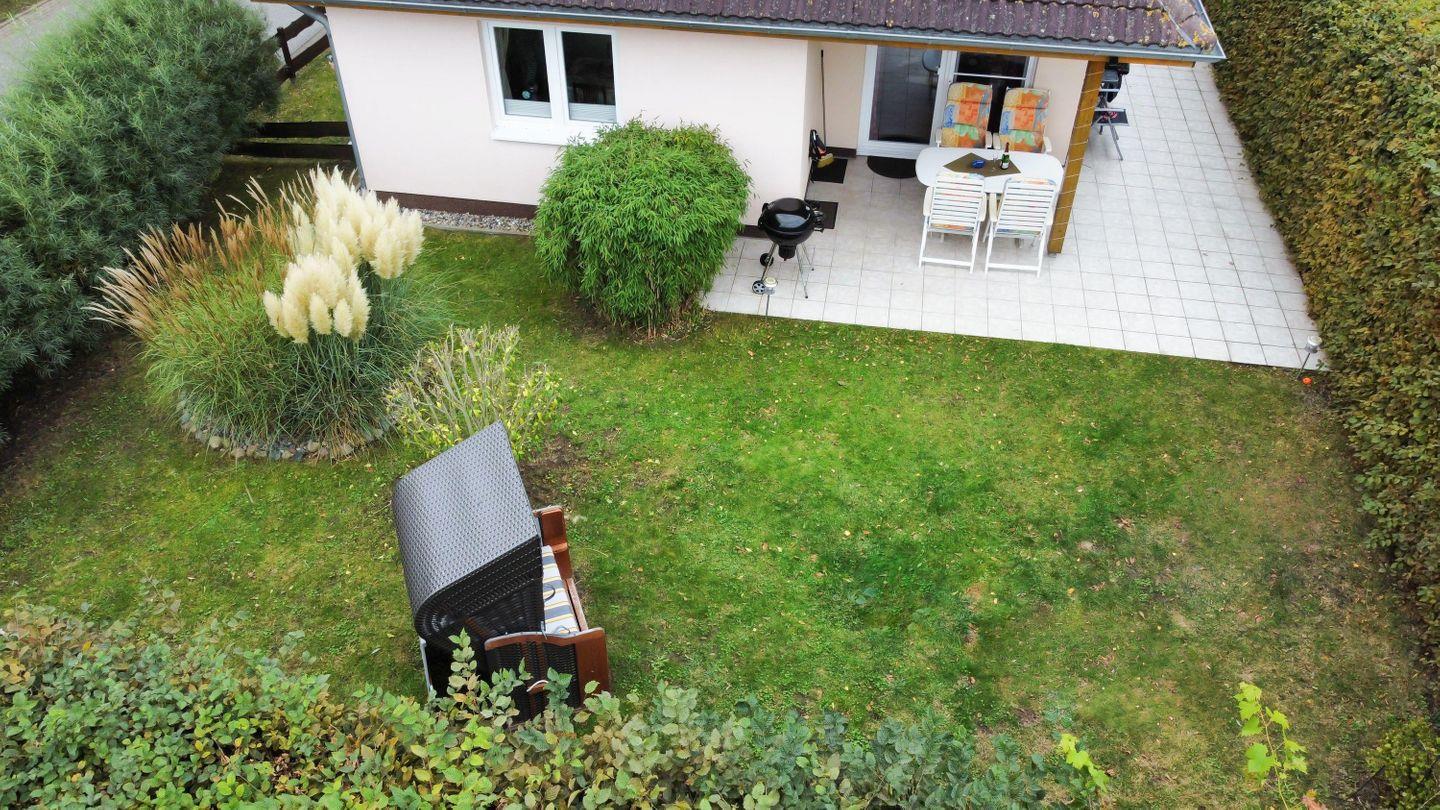 kostenfreien Parkflächen und das Holzgartenhaus werden mit der oberen Wohnung