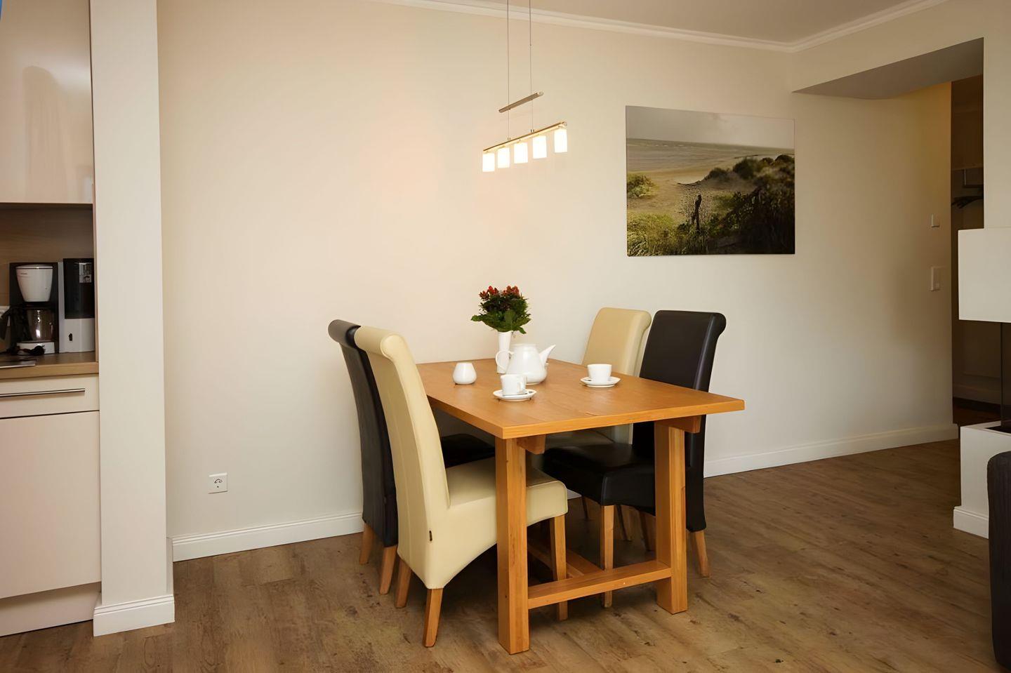 Die schöne, hochwertig eingerichtete Ferienwohnung liegt im ersten Obergeschoss der Villa Deichgraf. Hier finden vier Personen viel Platz, um sich wohlzufühlen. Vom großen Süd-Ost-BALKON blicken Sie auf das Meer. Die Ostsee selbst ist nur wenige Schritte entfernt. Genießen Sie beim Einschlafen und Aufwachen das Rauschen des Meeres in den beiden mit großem Doppelbett, geräumigem Kleiderschrank und Smart-TV eingerichteten SCHLAFZIMMERN. Für die Zubereitung von Mahlzeiten steht eine gut ausgestattete Einbauküche bereit. Neben den Standardgeräten finden Sie dort eine Mikrowelle, Backofen, Geschirrspüler und Kühlschrank mit Gefrierfach. Im Essbereich erwartet Sie ein großer Tisch mit vier bequemen Stühlen. Der WOHNBEREICH wird von einer komfortablen Couch zum Relaxen und einem Gas- Kamin mit großer Sichtscheibe dominiert. Dieser erzeugt an kühlen Tagen wohlige Wärme und ein schönes Flammenspiel. TV-Gerät, DVD-Player und Stereoanlage gehören zur technischen Ausstattung in Sachen Unterhaltung. Im eleganten, großzügigen BAD ist eine bodengleiche Dusche eingebaut worden. Zusätzlich gibt es ein separates GÄSTE-WC. Ein weiterer ABSTELLRAUM in der Wohnung bietet Platz für Ihre Koffer. Zur Wohnung gehören zudem ein KOSTENFREIER TIEFGARAGENSTELLPLATZ und eine Abstellmöglichkeit für FAHRRÄDER. Bitte beachten Sie die DURCHFAHRTSHÖHE von max. 1,90 m (!) der Tiefgarage. Mit einem Personenaufzug gelangen Sie von der Tiefgarage aus direkt zu Ihrer Wohnung. Im Erdgeschoss der Wohnung befindet sich ein gekennzeichneter Abstellbereich für Kinderwagen. Noch einige HINWEISE: Es handelt sich um eine Nichtraucherwohnung. Das Mitbringen von HAUSTIEREN ist NICHT gestattet. Eine Waschmaschine und ein Trockner stehen im separaten Hauswirtschaftsraum im Untergeschoss der Villa zu Ihrer Verfügung (gegen Gebühr /1,00 € Münzen). In der Nebensaison und Zwischensaison wird für die dritte und vierte Person (ab 3 Jahre) ein Aufpreis in Höhe von 10,00 €/ÜN pro Person berechnet. Sichern Sie sich einen der begehrten STRANDKÖRBE nur ein paar Meter entfernt von den rauschenden Wellen der Ostsee (Anfang Mai - Ende August) und buchen Sie jetzt zu besonderen Konditionen (12,00 € pro Tag oder 75,00 € pro Woche).