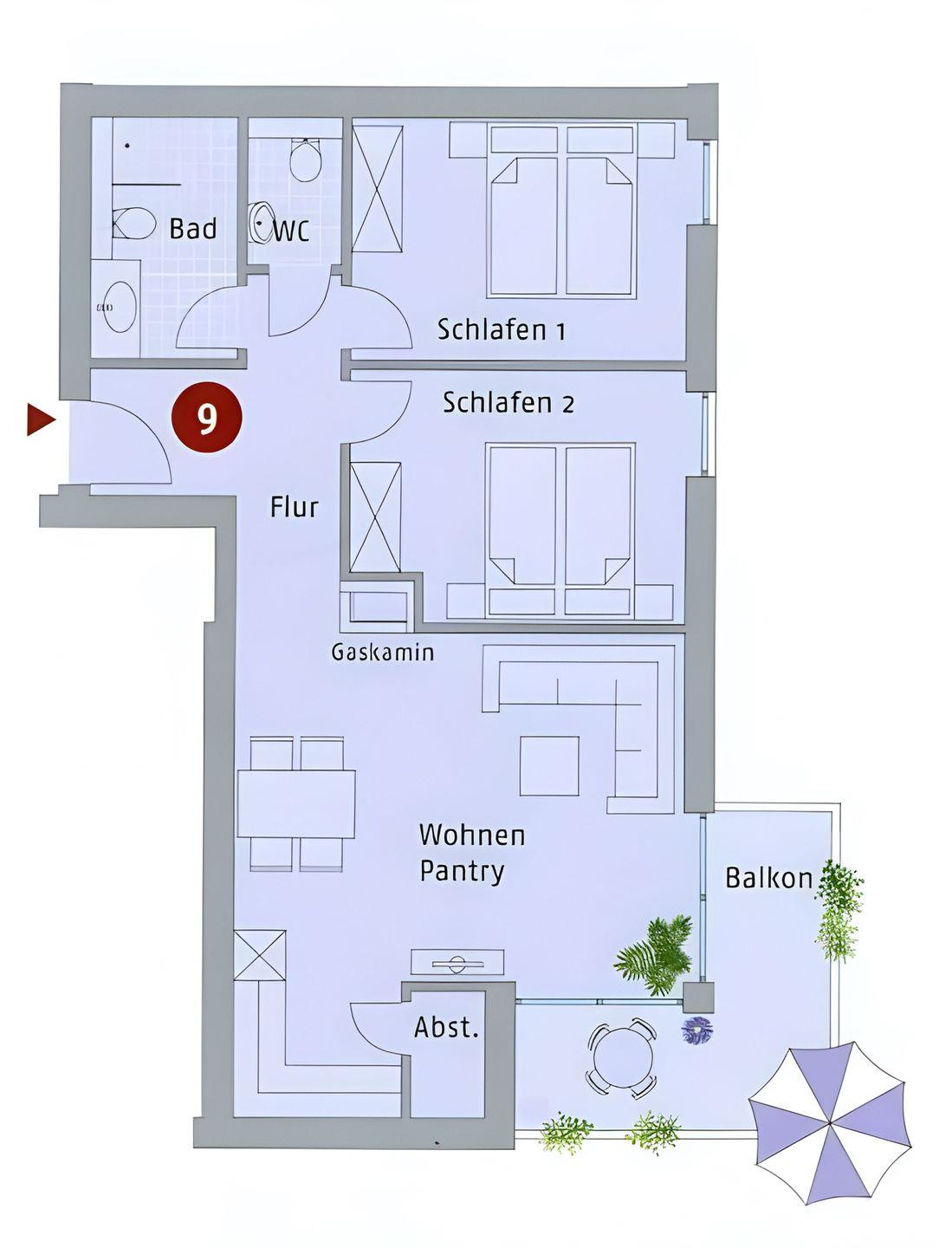 Die komfortable Villa Deichgraf WE 09 in Börgerende bietet auf ca. 69 m² Platz für bis zu 4 Personen. Sie verfügt über zwei Schlafzimmer, einen Balkon mit eingeschränktem Meerblick, einen Kamin sowie eine offene, voll ausgestattete Küche. Ein privater, kostenloser Parkplatz, Aufzug und gemeinschaftlich nutzbare Waschmöglichkeiten runden das Angebot ab.