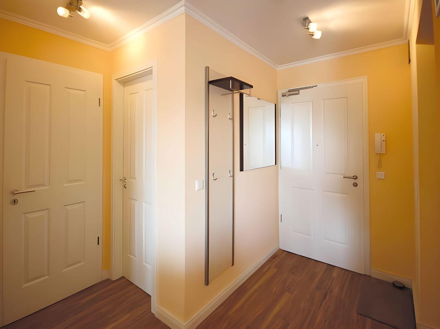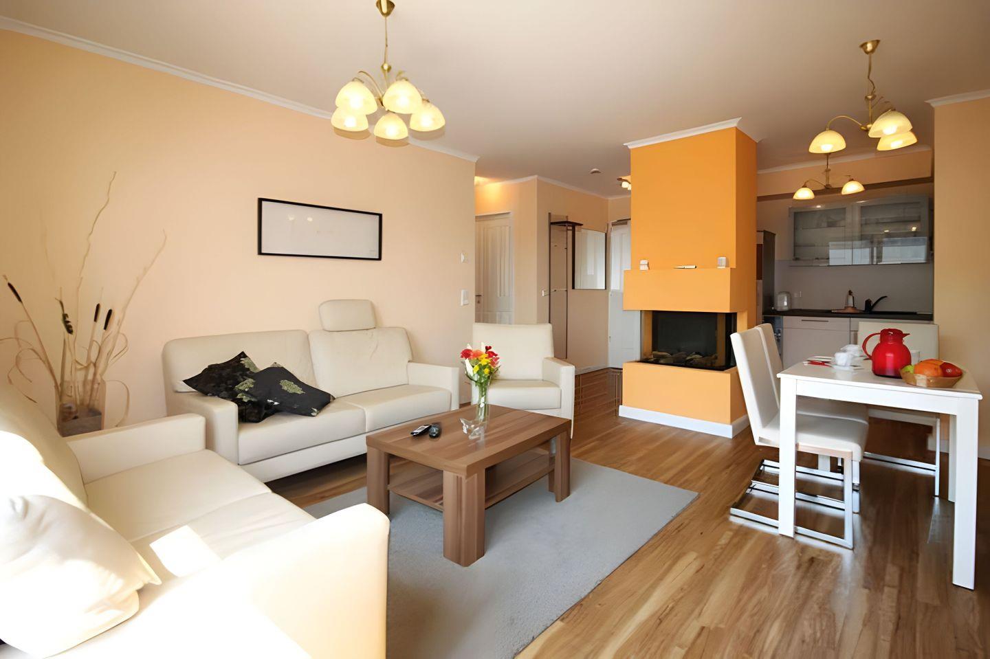Der freundliche WOHN/ ESSBEREICH empfängt Sie mit einer hellen Ledersitzecke sowie passenden Esszimmerstühlen samt Sitzbank. Der hölzerne Esstisch bietet zudem Platz für gemeinsame Mahlzeiten und gesellige Spieleabende. Die technische Ausstattung der Ferienwohnung wird abgerundet mit einem TV-Gerät sowie Blu-ray-Player und Radio. Die schöne kleine EINBAUKÜCHE ist mit allem Notwendigen wie Geschirrspüler, Kühlschrank, inklusive Gefrierfach, Kaffeemaschine, Wasserkocher, Toaster und Mikrowelle ausgerüstet. Im Schlafzimmer erwarten Sie ein großzügiges Doppelbett mit Nachttischen und Kleiderschrank. Ein separater ABSTELLRAUM bietet weiteren Stauraum für Ihr Gepäck. Für die dritte Person steht eine Klappmatratze zur Verfügung. Das Highlight des BADEZIMMERS ist eine ebenerdige gläserne Dusche. Über den Wohnbereich gelangen Sie auf den herrlichen SÜD-BALKON. Hier lässt sich der Morgen energiegeladen starten und der Abend gemütlich ausklingen. Eine Fußbodenheizung sorgt für wohlige Wärme in allen Räumen. DER KAMIN IM WOHNBEREICH DIENT AUSSCHLIESSLICH DEKORATIVEN ZWECKEN, ist nicht funktionsfähig und DARF NICHT IN BETRIEB GENOMMEN WERDEN. Zu der Wohnung gehört ein KOSTENFREIER AUSSENSTELLPLATZ. In der Tiefgarage befindet sich zudem eine Abstellmöglichkeit für FAHRRÄDER. Bitte beachten Sie die DURCHFAHRTSHÖHE von max. 1,90 m(!) der TIEFGARAGE. Mit einem Personenaufzug gelangen Sie direkt zu Ihrer Wohnung. Im Erdgeschoss der Wohnung befindet sich ein gekennzeichneter Abstellbereich für Kinderwagen. Noch einige HINWEISE: Es handelt sich um eine Nichtraucherwohnung. In dieser Unterkunft ist KEIN WLAN bereitgestellt. HAUSTIERE sind NICHT erlaubt. Wäschesets, Kinderreisebett und Kinderhochstuhl können kostenpflichtig zugebucht werden. Eine Waschmaschine und ein Trockner stehen im separaten Hauswirtschaftsraum im Untergeschoss der Villa zu Ihrer Verfügung (gegen Gebühr/ Münzautomat). Für die dritte Person (ab 3 Jahre) wird ein Aufpreis in Höhe von 10,00 €/ÜN berechnet. Sichern Sie sich vorab einen der begehrten STRANDKÖRBE nur ein paar Meter entfernt von den rauschenden Wellen der Ostsee (Anfang Mai - Ende August) und buchen Sie jetzt zu besonderen Konditionen (12,00 € pro Tag oder 75,00 € pro Woche).