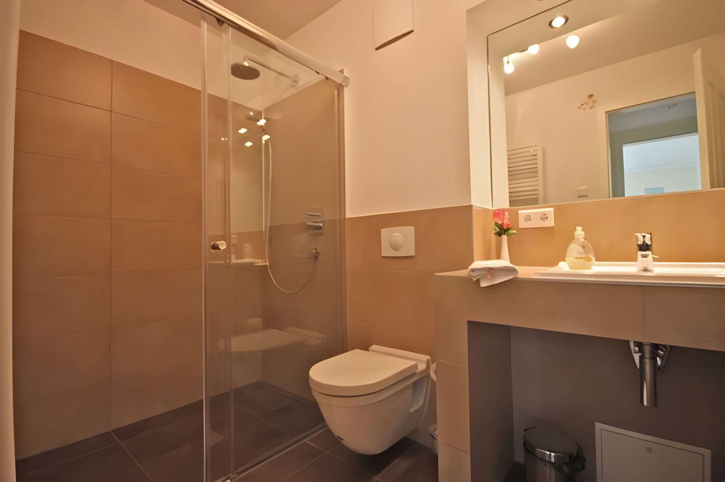 Gönnen Sie sich einen unvergesslichen Urlaub in Wohnung 17 der Villa Deichgraf. Die Ferienunterkunft wurde liebevoll und mit hochwertigen Möbeln für bis zu fünf Personen eingerichtet. Der WOHNRAUM verfügt über eine umfangreiche technische Ausstattung mit TV- Gerät sowie DVD-, CD- Player und Radio. Die bequeme Leder-Sitzecke mit Schlaffunktion, mehrere Massivholzmöbel aus Erle und ein großer Esstisch mit entsprechenden Stühlen bestimmen die gemütliche Atmosphäre des Raums. DER KAMIN DIENT LEDIGLICH DEKORATIVEN ZWECKEN, ist nicht funktionsfähig und DARF NICHT BETRIEBEN WERDEN. In der voll ausgestatteten EINBAUKÜCHE (Geschirrspüler, Mikrowelle, Cerankochfeld, Backofen, Dunstabzugshaube, Kühlschrank mit-Gefrierfach, Kaffeemaschine, Wasserkocher, Toaster und Eierkocher) lassen sich leckere Mahlzeiten zaubern. Die BEIDEN SCHLAFZIMMER empfangen Sie jeweils mit einem gemütlichen Doppelbett (7-Zonen Matratzen und verstellbarem Lattenrost) sowie Kleiderschrank und Garderobe. Ein Schlafzimmer ist zusätzlich mit einem an der Wand montierten TV- Gerät ausgestattet. Das elegante DUSCHBAD besticht mit bodengleicher Dusche, Regenbrause (Raindance Air), großem Spiegel, Handtuchtrockner, Kosmetikspiegel und Föhn. Angrenzend befindet sich ein weiteres separates GÄSTE-WC. Über den Wohnbereich gelangen Sie auf den ECK-BALKON in Süd-West-Ausrichtung mit Meerblick. Hier werden Sie, bei unbedecktem Himmel, von morgens bis abends durch Sonne verwöhnt. Das Gebäude liegt nur ca. 50 m vom Ostseestrand entfernt. Ein an die Küche angrenzender ABSTELLRAUM birgt weiteren Stauraum für Ihr Reisegepäck. Die dort gelagerten Haushaltsgeräte wie Staubsauger, Bodenwischer, Handfeger, Wäscheständer, Fußbank und Kindertoilettensitz, stehen bei Bedarf zur Verfügung. Eine Fußbodenheizung sorgt in allen Räumen für wohlige Wärme. Zur Wohnung gehören zudem ein KOSTENFREIER TIEFGARAGENSTELLPLATZ und eine Abstellmöglichkeit für FAHRRÄDER. Bitte beachten Sie die DURCHFAHRTSHÖHE von max. 1,90 m(!) der TIEFGARAGE. Mit einem Personenaufzug gelangen Sie von der Tiefgarage aus direkt zu Ihrer Wohnung. Im Erdgeschoss der Wohnung befindet sich ein gekennzeichneter Abstellbereich für Kinderwagen. Noch einige HINWEISE: Es handelt sich um eine Nichtraucherwohnung. HAUSTIERE sind NICHT erlaubt. In dieser Ferienwohnung wurde KEIN WLAN installiert. Wäschesets, Kinderreisebett und Kinderhochstuhl können kostenpflichtig zugebucht werden. Eine Waschmaschine und ein Trockner stehen im separaten Hauswirtschaftsraum im Untergeschoss der Villa zu Ihrer Verfügung (gegen Gebühr/ Münzautomat). Für die fünfte Person (ab 3 Jahre) wird ein Aufpreis in Höhe von 10,00 €/ÜN berechnet. Sichern Sie sich zusätzlich vorab einen der begehrten STRANDKÖRBE nur ein paar Meter entfernt von den rauschenden Wellen der Ostsee (Anfang Mai - Ende August) und buchen Sie jetzt zu besonderen Konditionen (12,00 € pro Tag oder 75,00 € pro Woche).