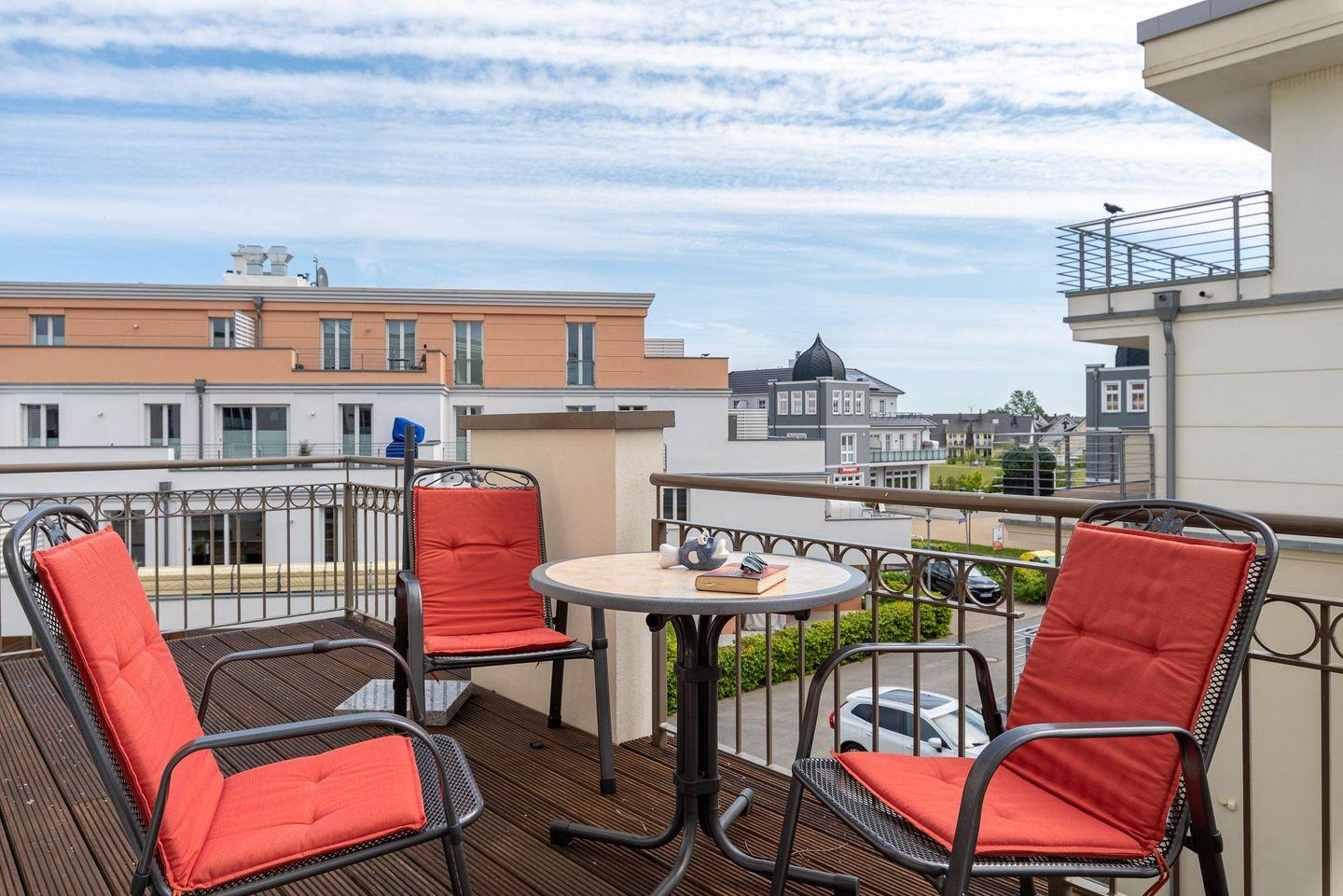 über einen eigenen Balkon-Zugang. Die große Sonnenterrasse in