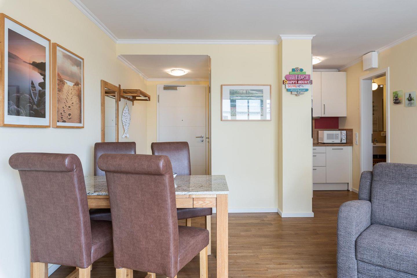 Die Villa Strandvogt WE 15 in Börgerende bietet auf ca. 50 m² ein komfortables Apartment mit offenem Wohn- und Küchenbereich, Schlafzimmer, Balkon und kostenlosem Privatparkplatz. WLAN, Kabel-TV sowie eine moderne Ausstattung mit Spülmaschine, Backofen und gemeinschaftlicher Waschmaschine und Trockner sorgen für angenehmen Aufenthalt. Der Strand und Restaurants sind nur wenige Gehminuten entfernt.