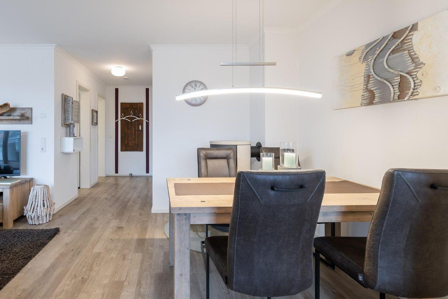 Die Villa Sanddorn WE 09 bietet auf ca. 53 m² ein modernes 2-Zimmer-Ambiente mit offenem Wohnbereich, Balkon und umfassender Ausstattung, darunter WLAN, Kabel-TV, Spülmaschine und Kaminofen. Sie profitieren von einem kostenfreien Privatparkplatz, Aufzug sowie kurzen Wegen zum Strand, Restaurants und Nahverkehr. Ideal für Paare oder kleine Familien.