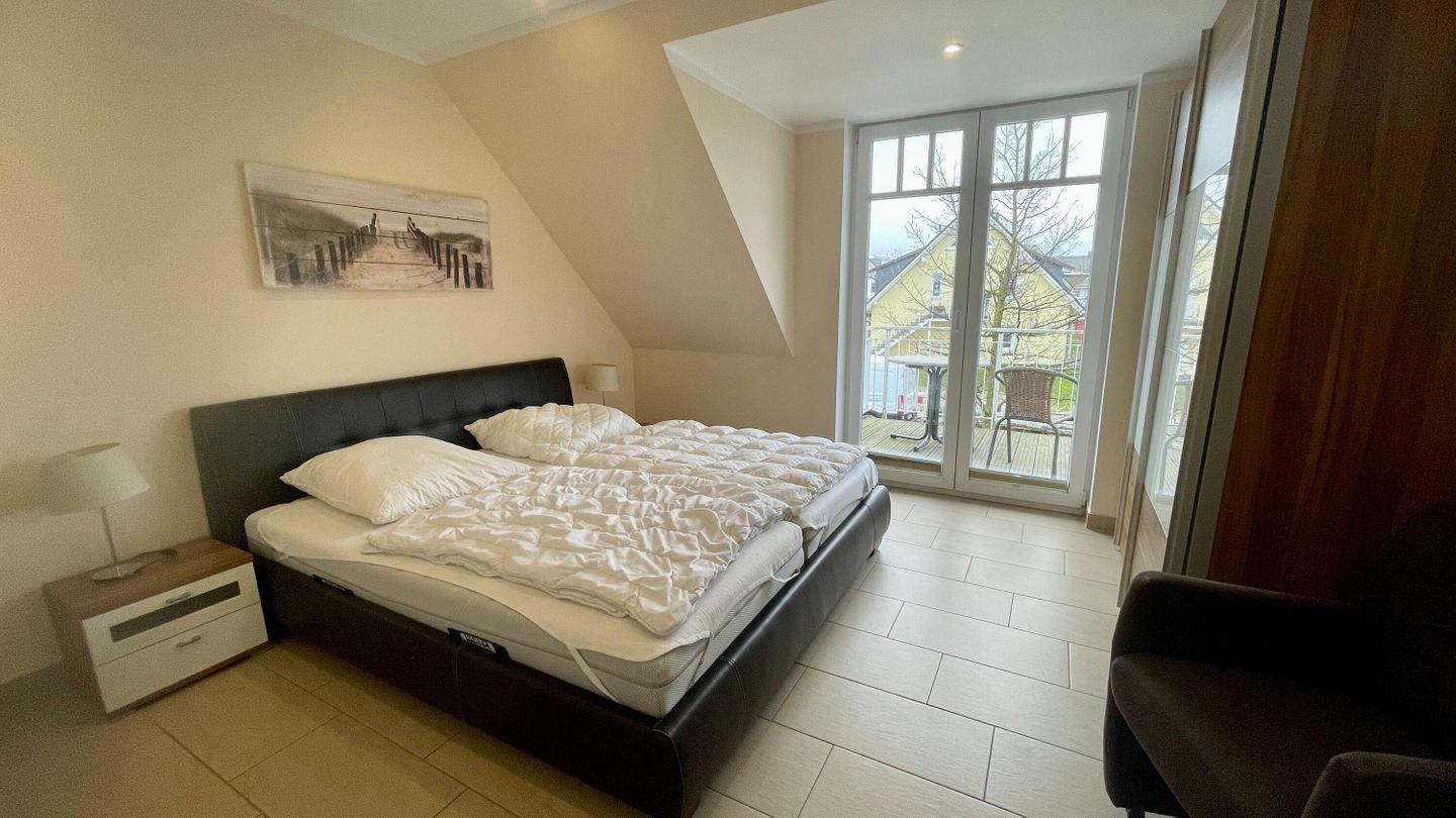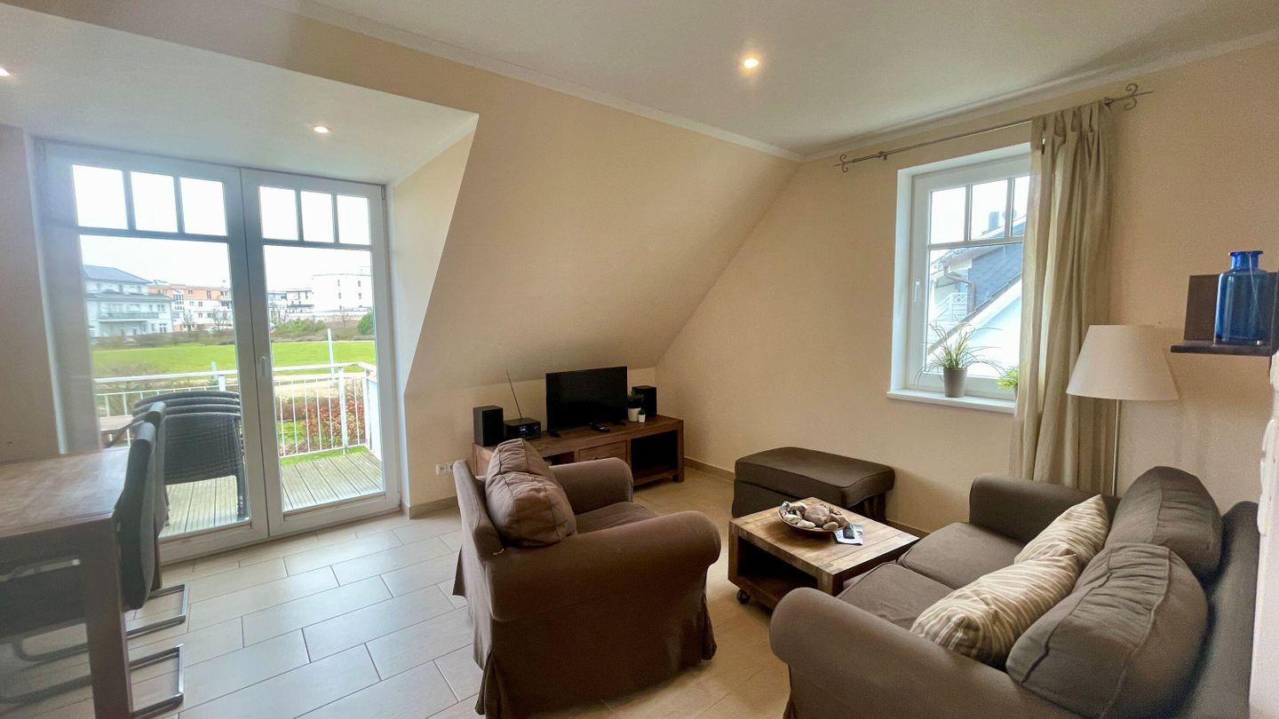 In der gut ausgestatteten Küche können Sie Ihre Mahlzeiten zubereiten. Sie finden hier einen Geschirrspüler, einen Backofen und eine Kaffeemaschine – ideal für den Start in den Tag. Vom Wohnbereich aus gelangen Sie auf den Balkon, auf dem Sie bei schönem Wetter entspannen und die frische Ostseeluft genießen können.
