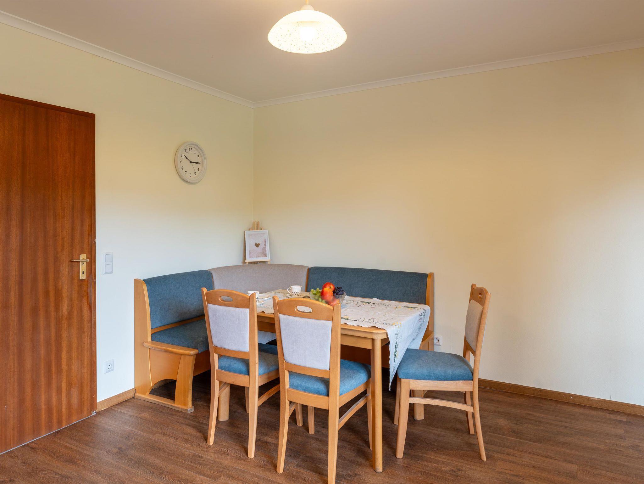 Eine vollausgestattete Küche mit Einbauküche und Essecke lädt zum gemeinsamen gemütlichen kochen und essen ein.