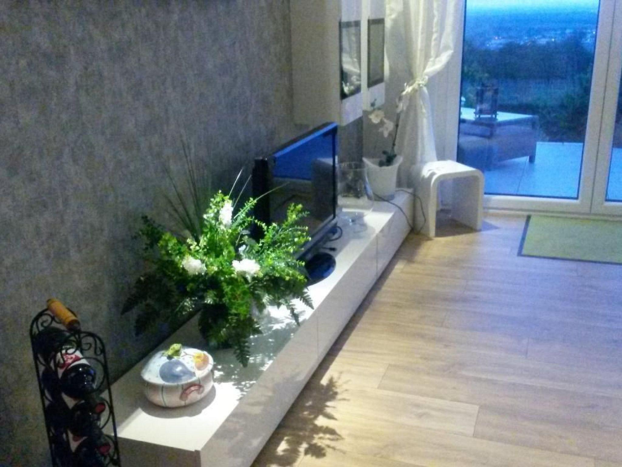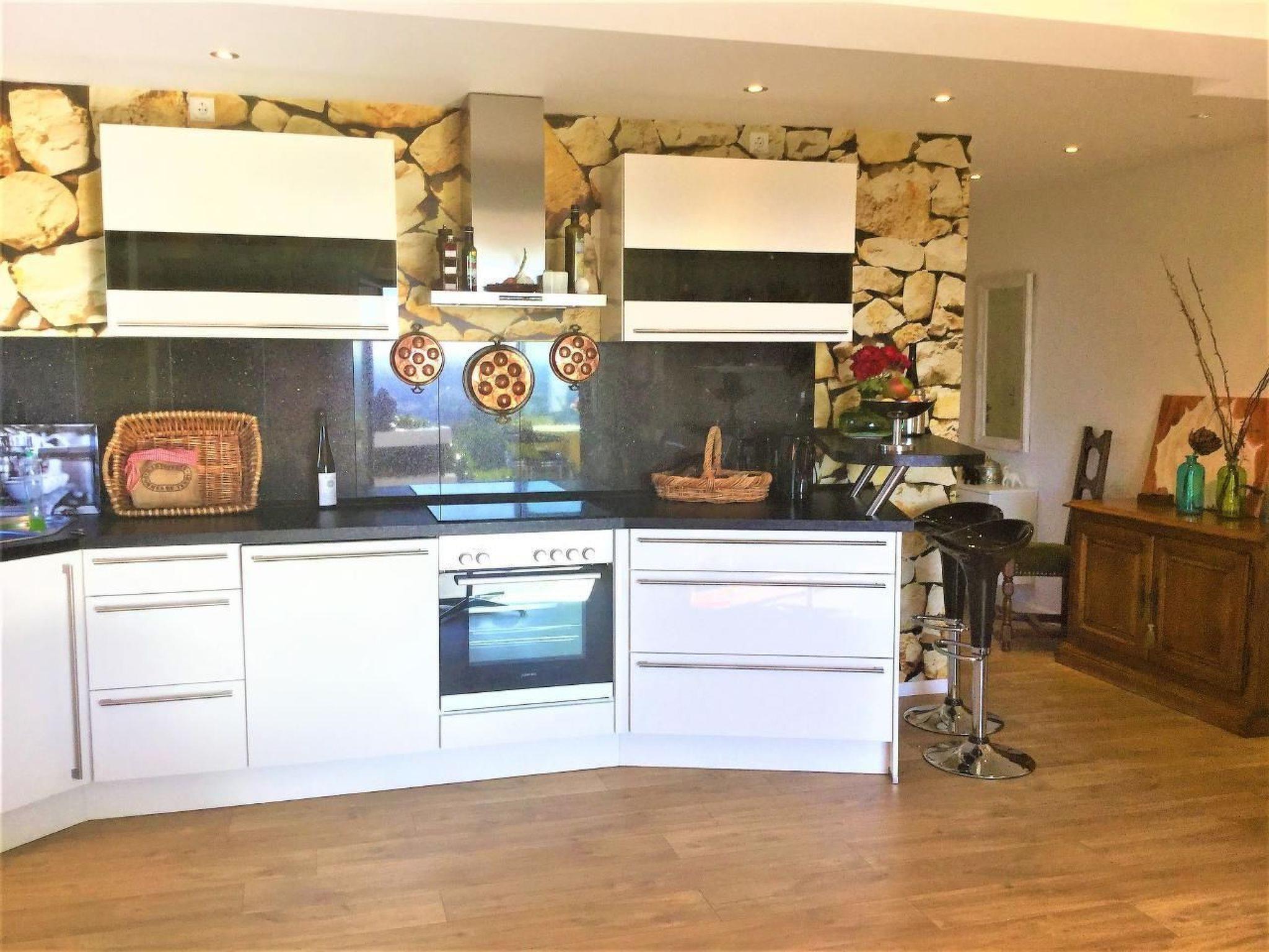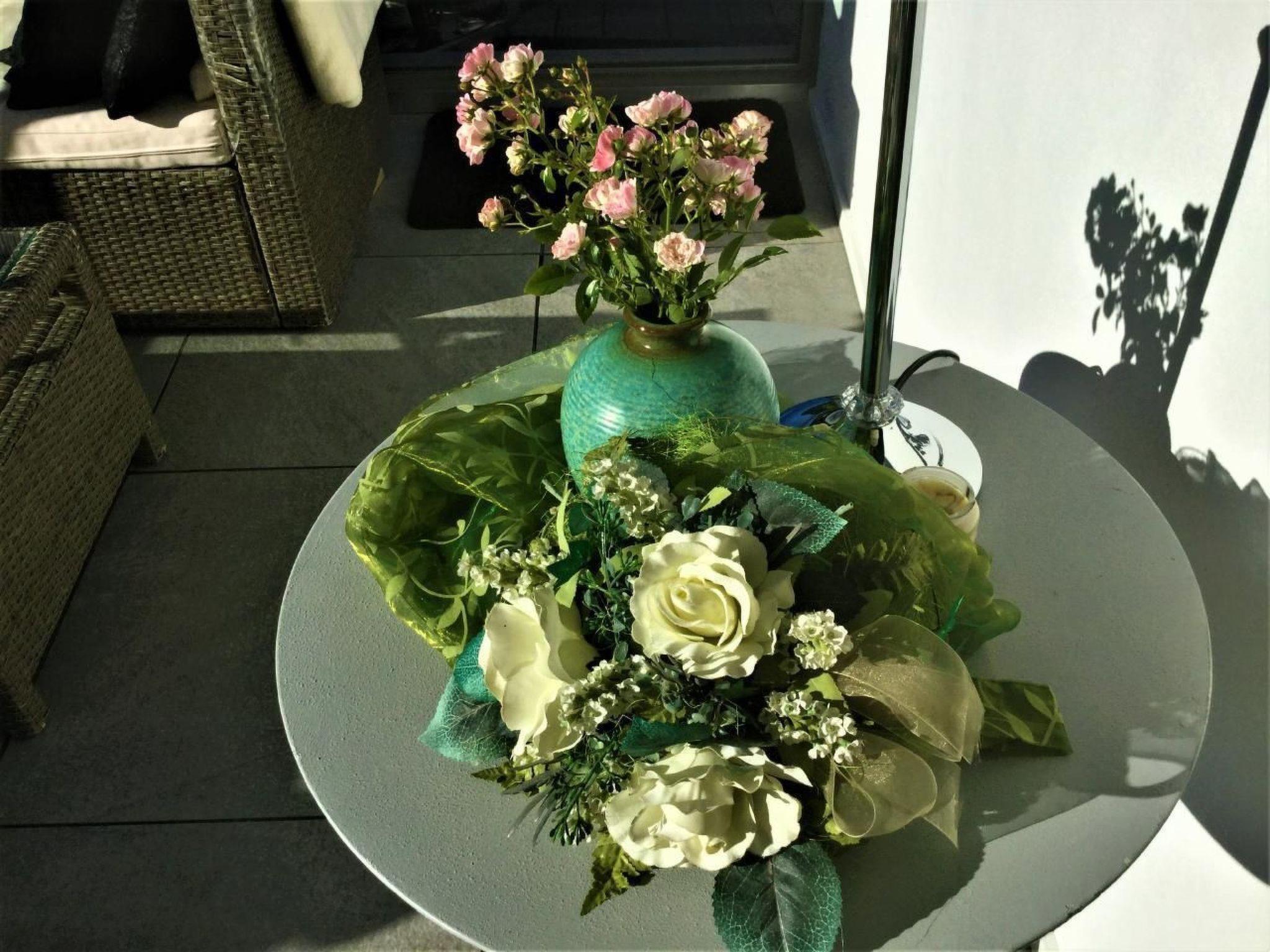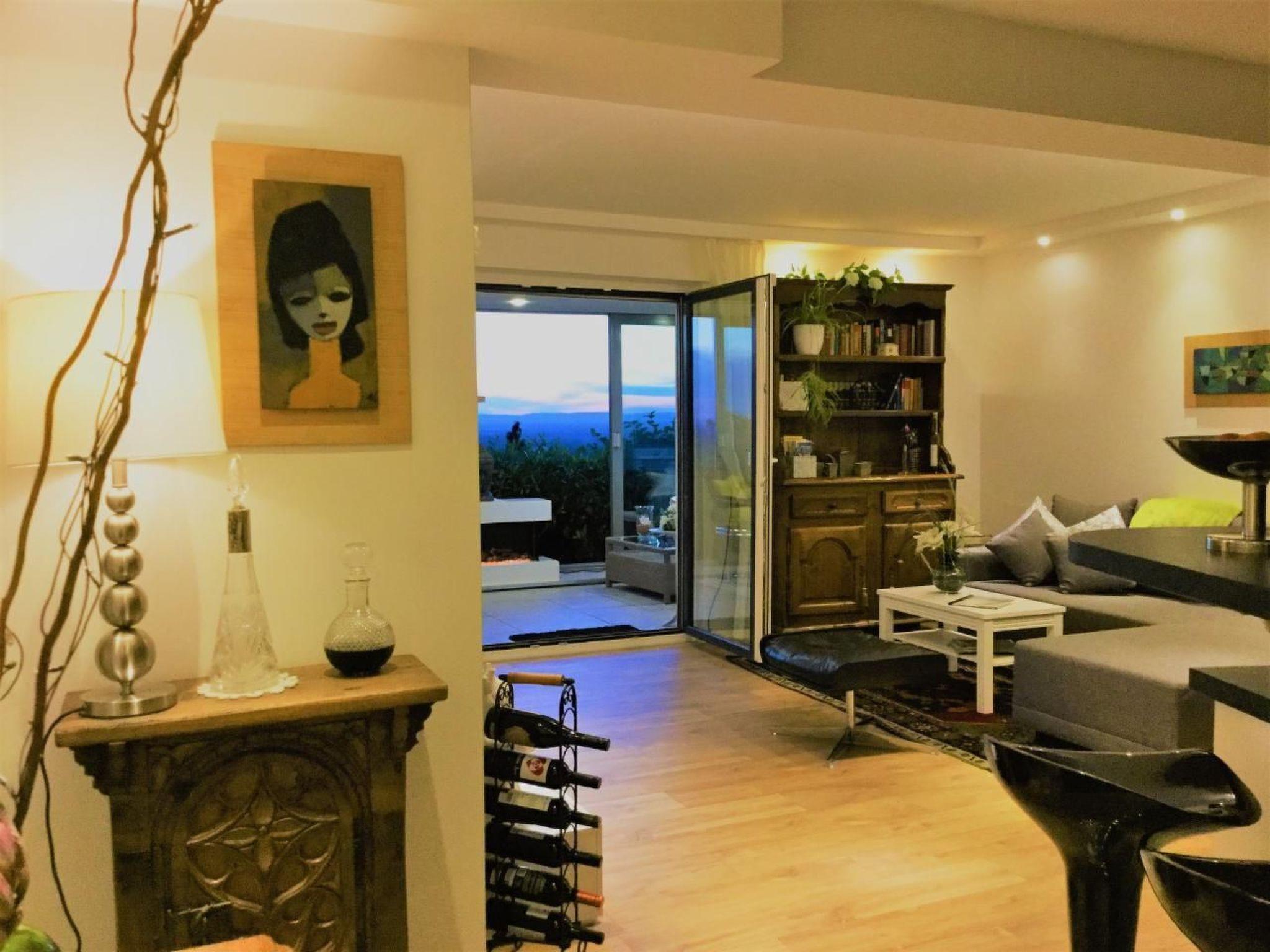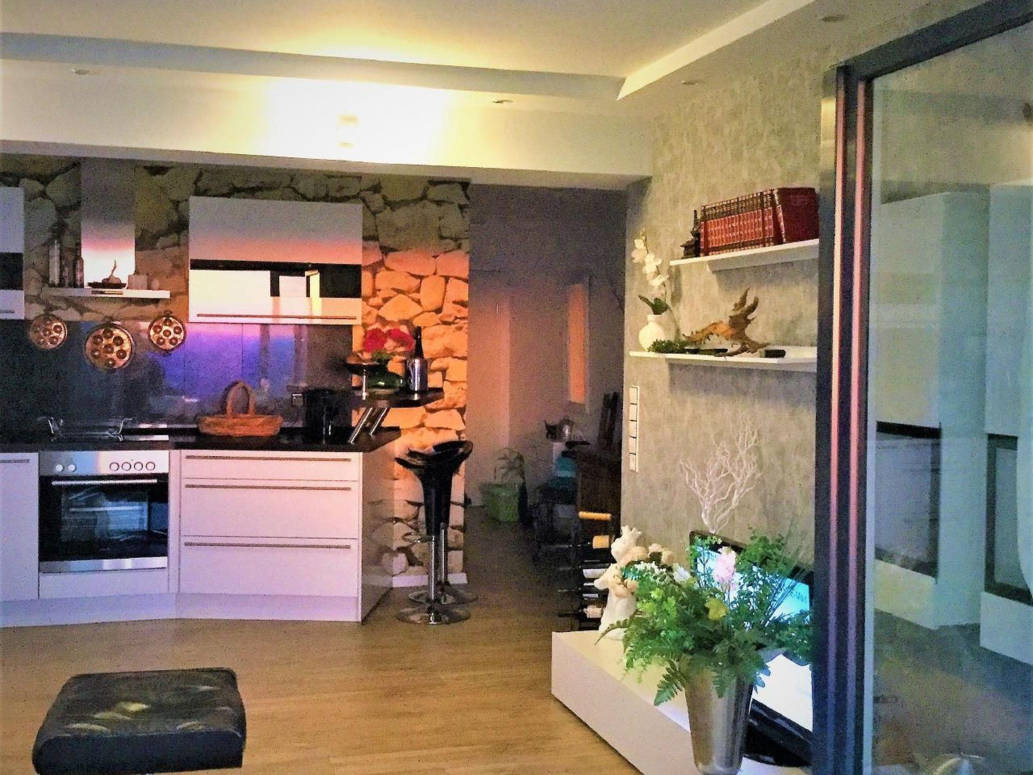 The interior of our 80 square metre flat exudes pure luxury. A state-of-the-art fitted kitchen with counter forms the centrepiece, while the bathroom offers state-of-the-art comfort with a large walk-in shower under a simulated starry sky, an extra-large washbasin and a mirror cabinet. The bedroom is equipped with a new box-spring bed and high-quality pocket spring mattresses for maximum sleeping comfort. The open-plan living area flows into a cosy conservatory with a fireplace, which in turn provides access to a panoramic terrace with phenomenal views.