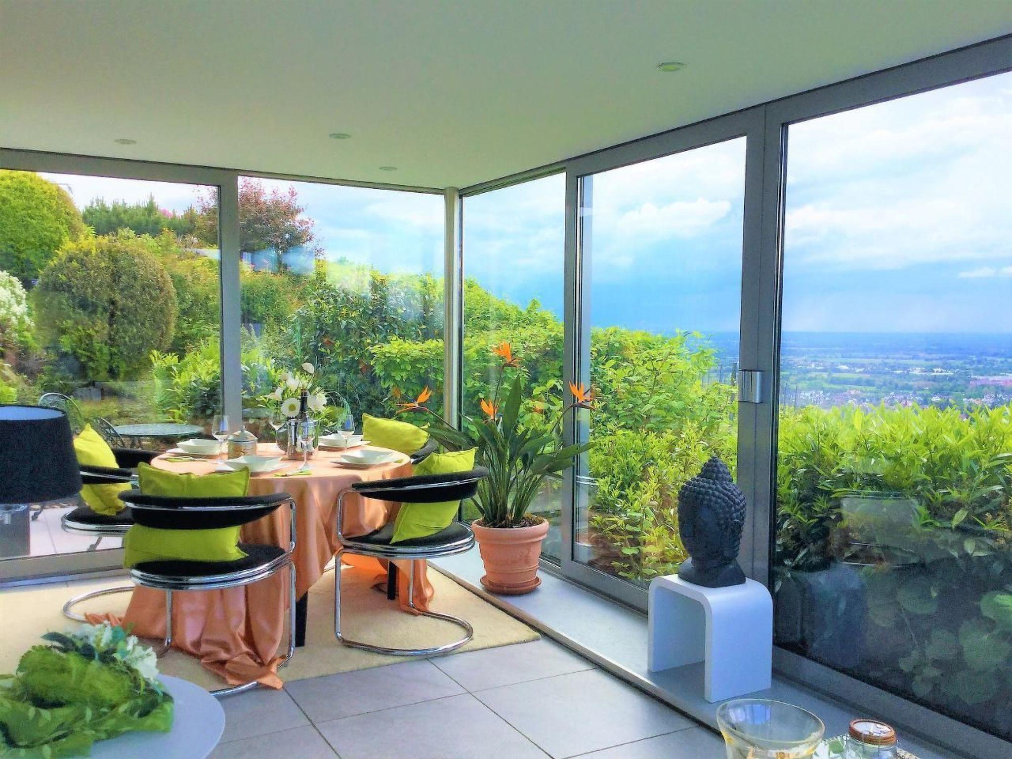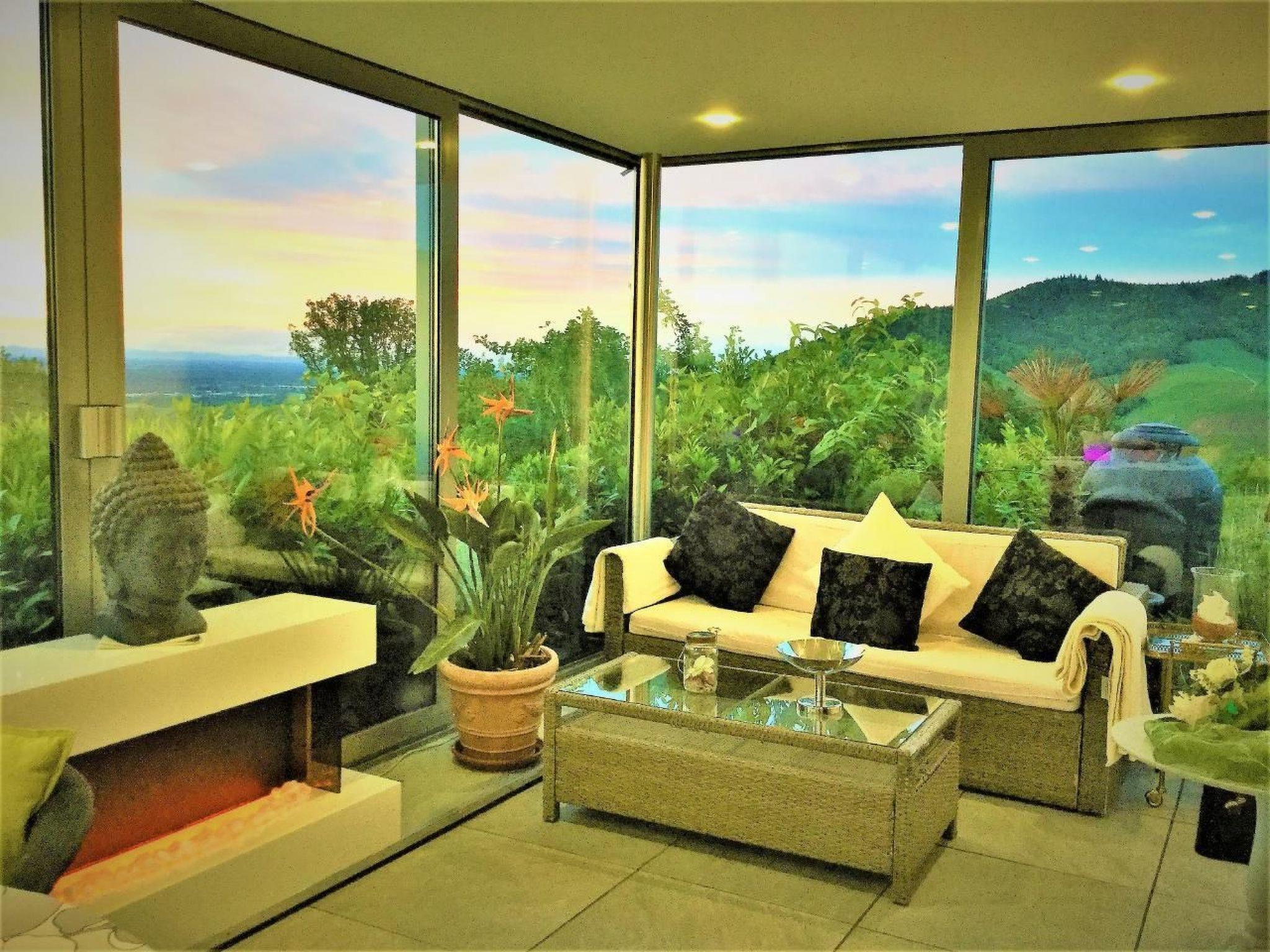 Outside, the luxurious character of your stay continues seamlessly. The newly added conservatory with panoramic doors that slide away to the side provides a unique feeling of freedom without compromising on protection from the elements. An additional terrace offers a heavenly place to linger and recharge your batteries in the midst of Black Forest nature.