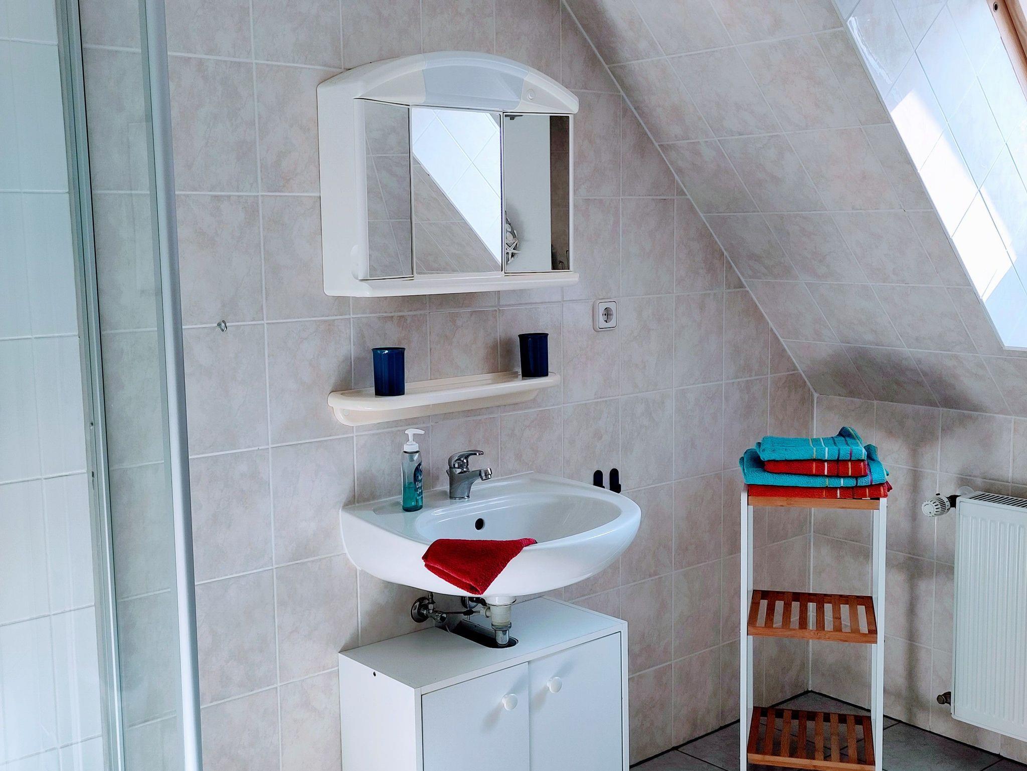 Das Doppelbett hat 2 neue Matratzen 90 x 200 m. Das zweite Bad hat eine Dusche/WC.